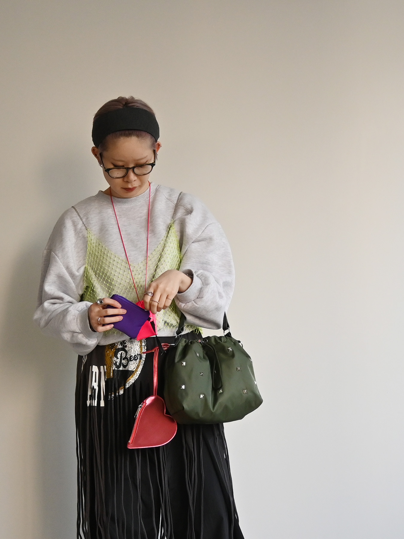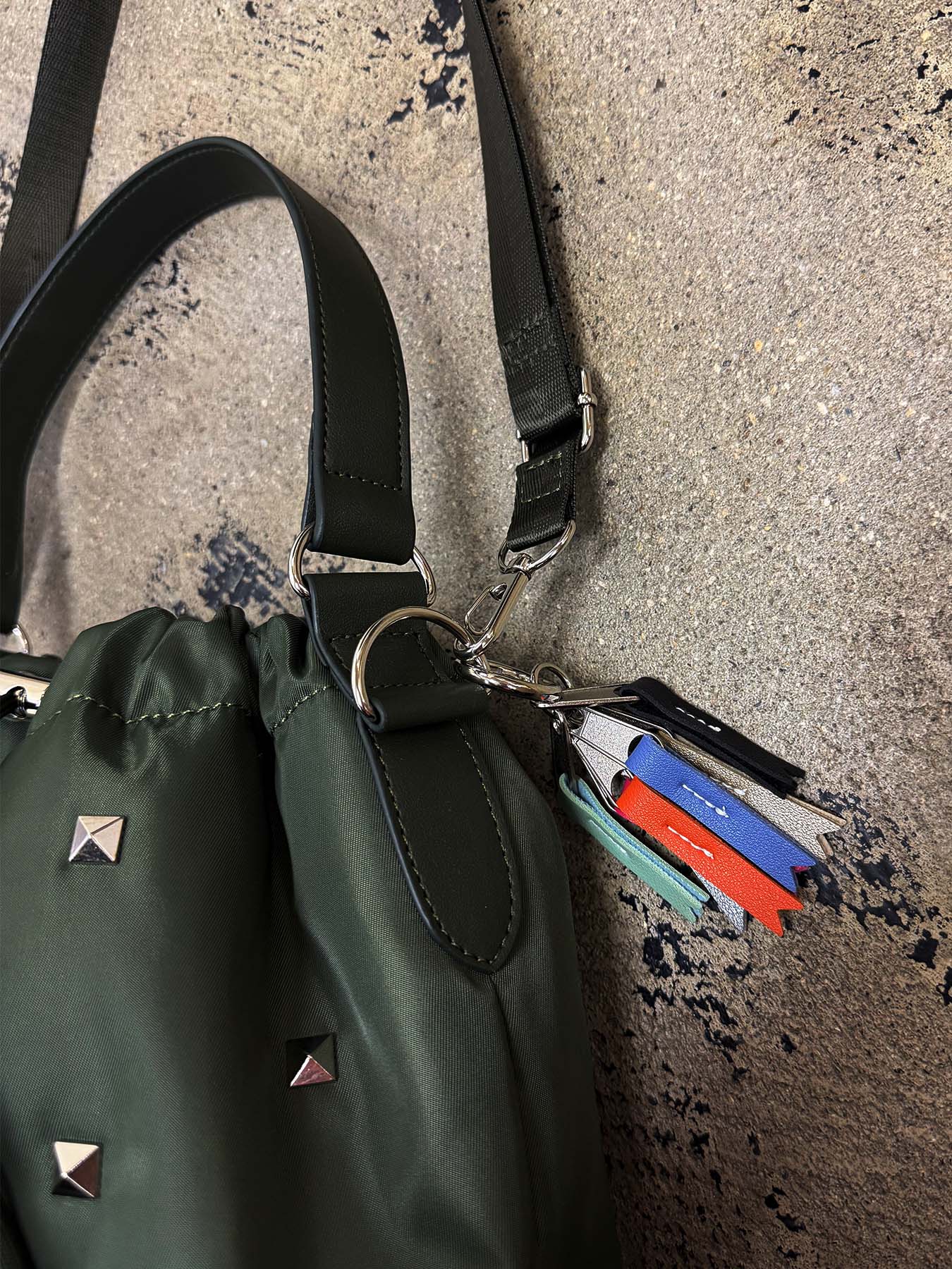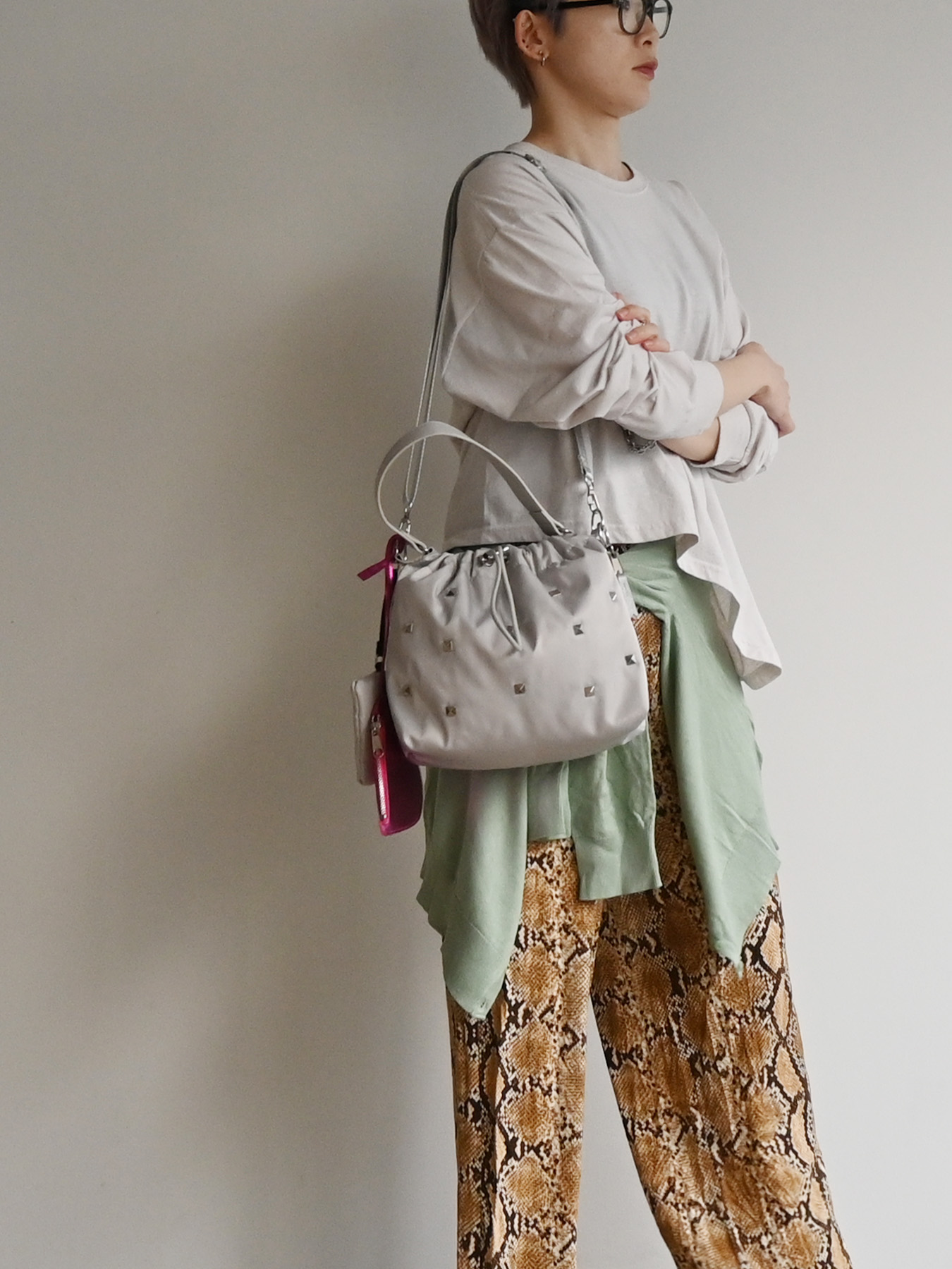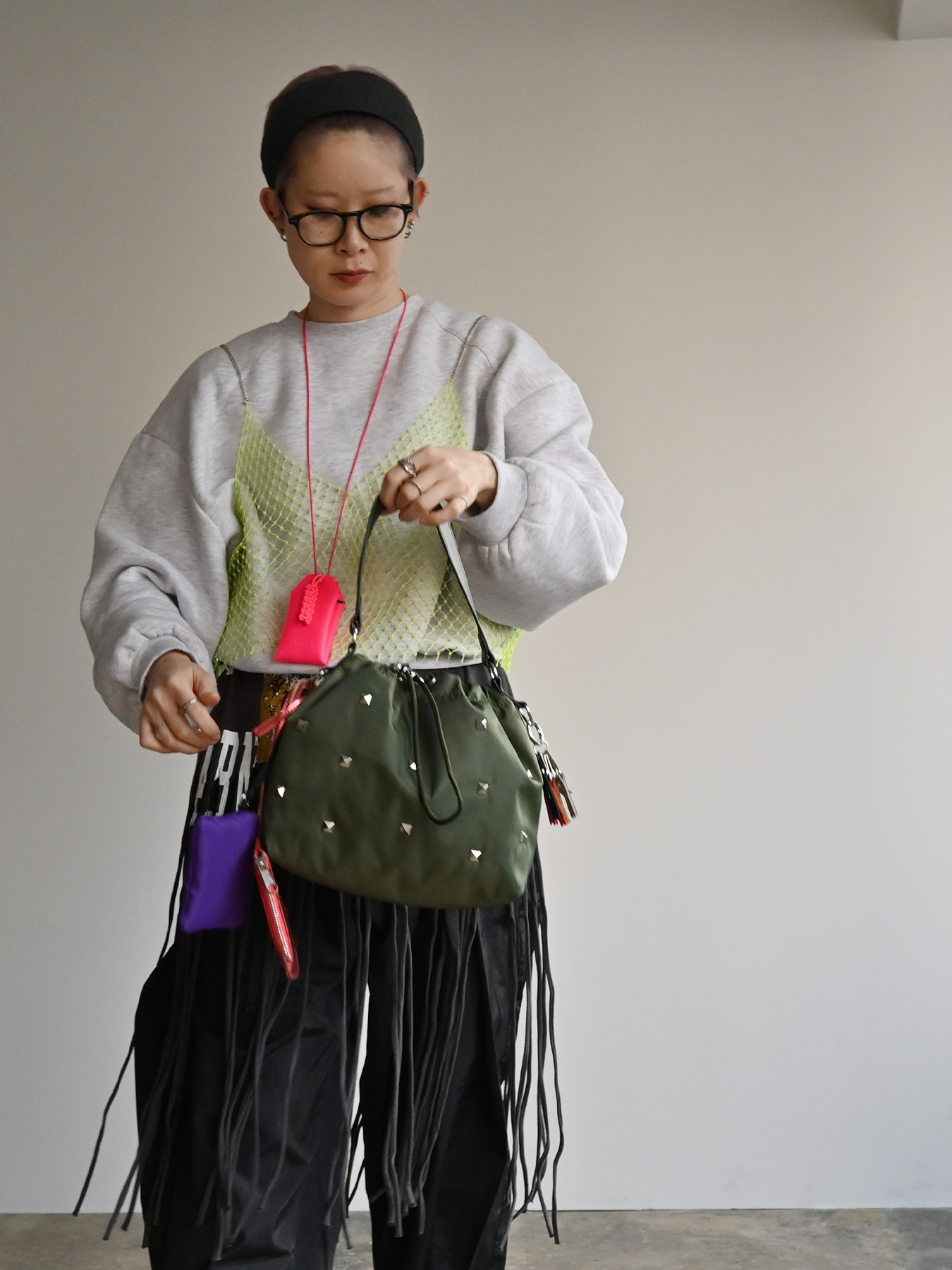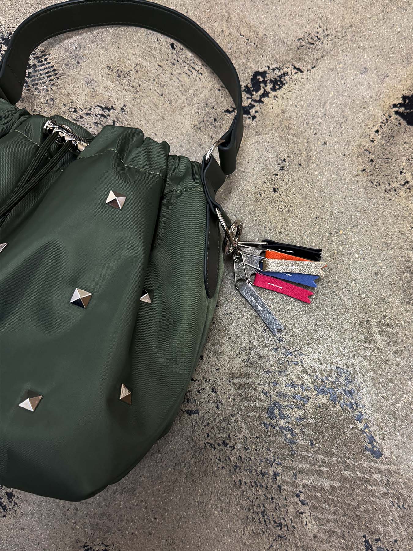 ポーチチャームは取り外し可能で、スタイリングや気分にあわせたアレンジも可能です。
