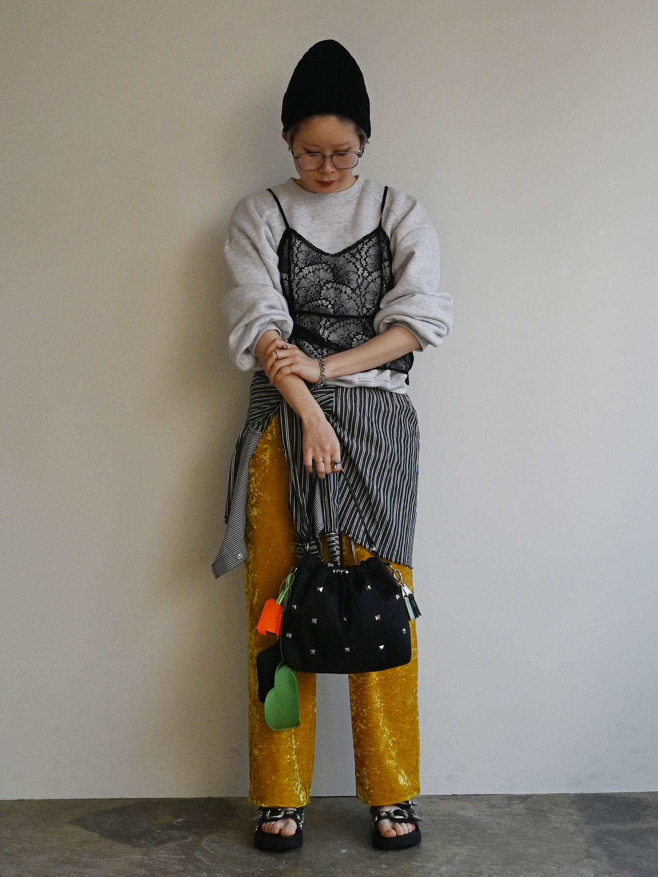 ●過剰な摩擦、湿った状態でご使用されますと他の衣類への色移り、色落ちする場合があります。