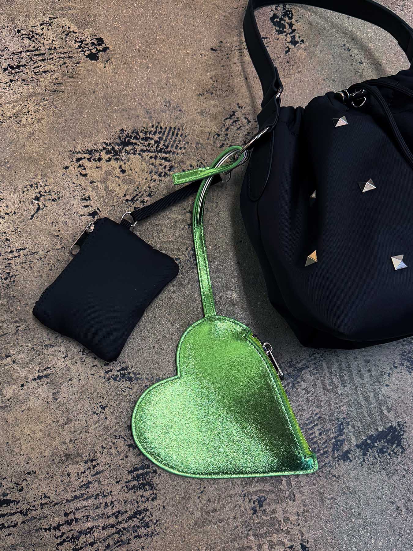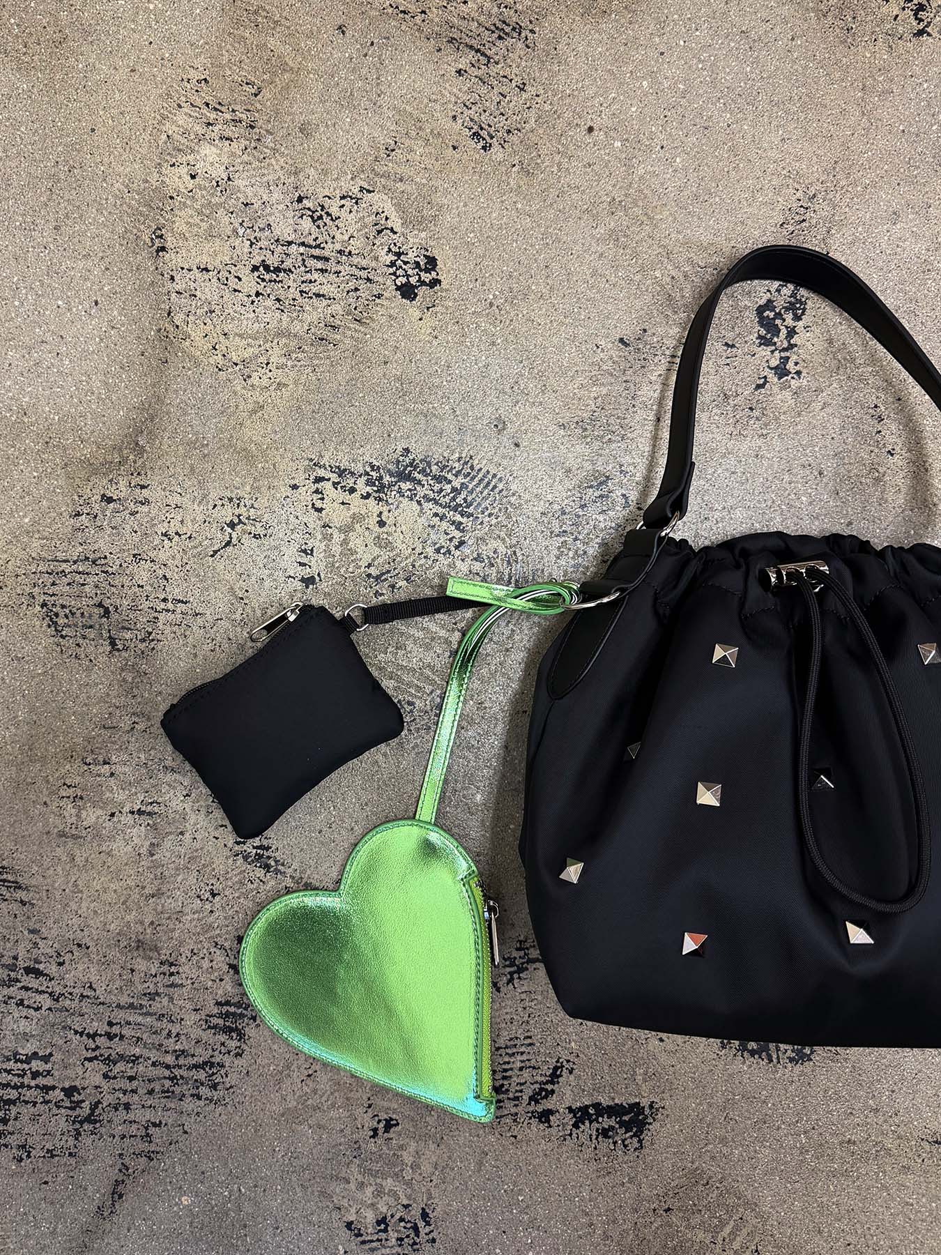 キュンとするハートチャームとピリっとクールなスタッズのバランス。