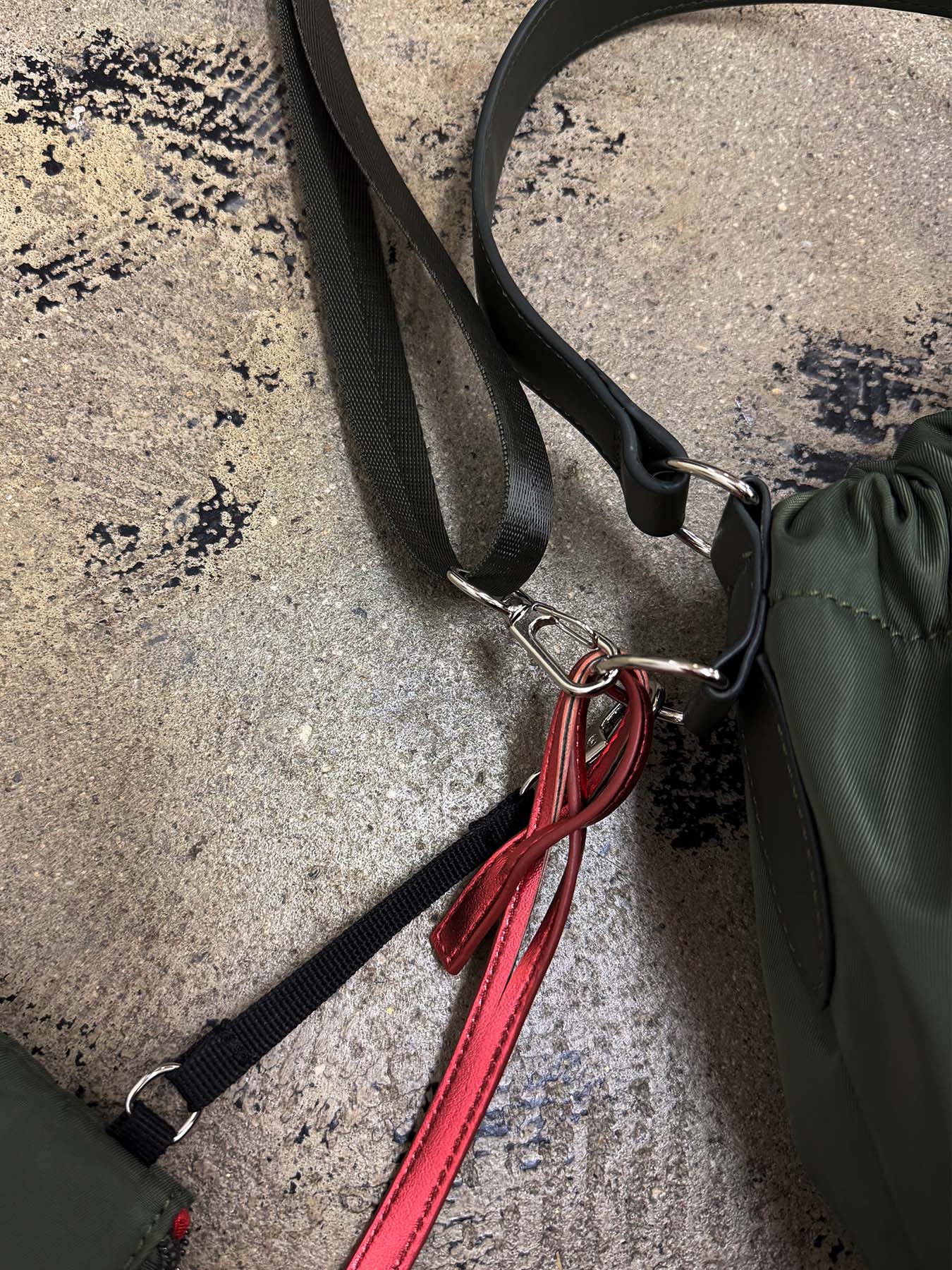 ショルダーストラップは長さ調整が可能で肩掛け・ナナメ掛けのどちらも対応。