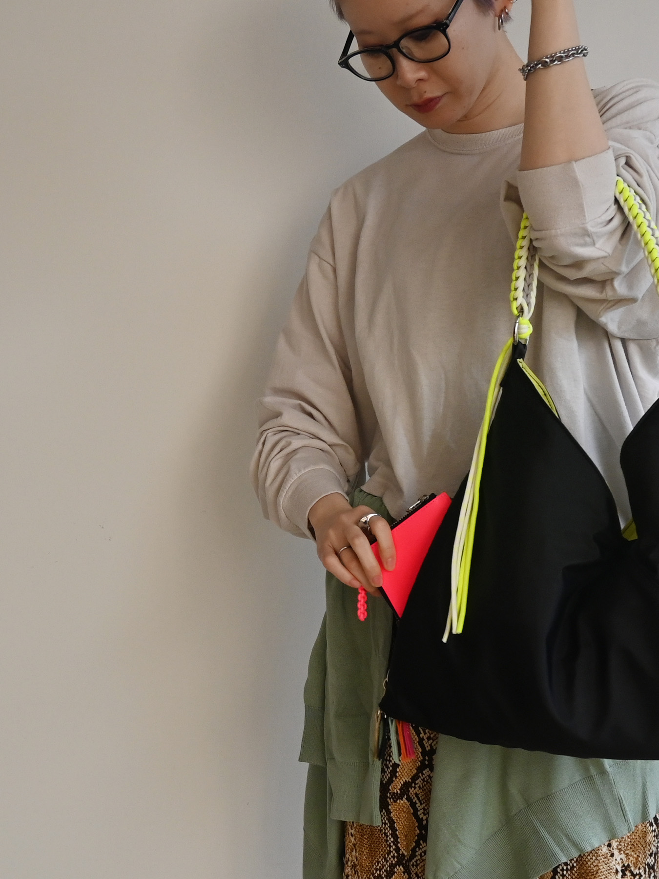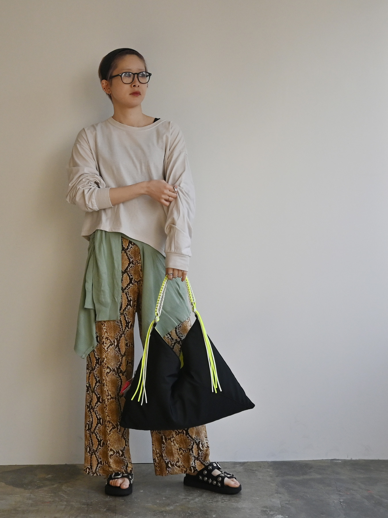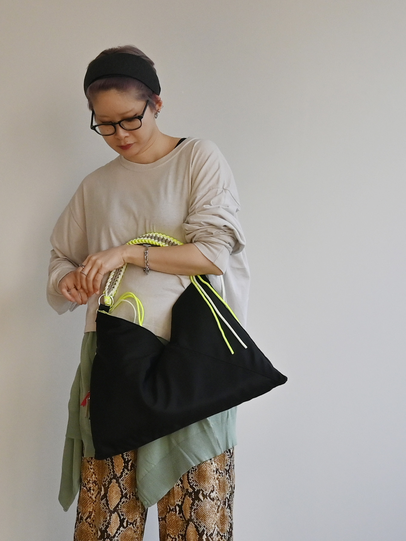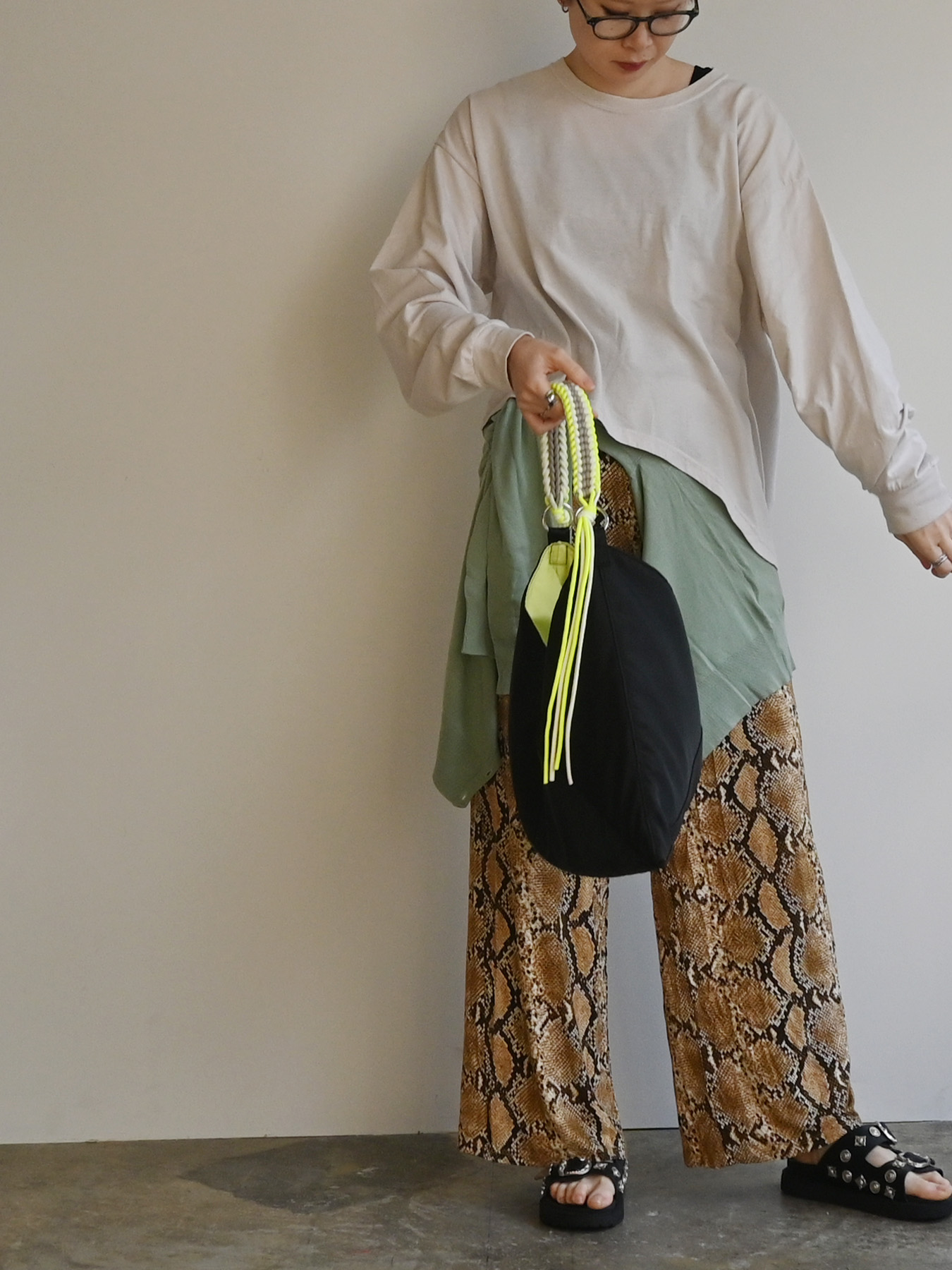 柔らかな生地に自然なドレープが生まれる持つだけでスタイリングに