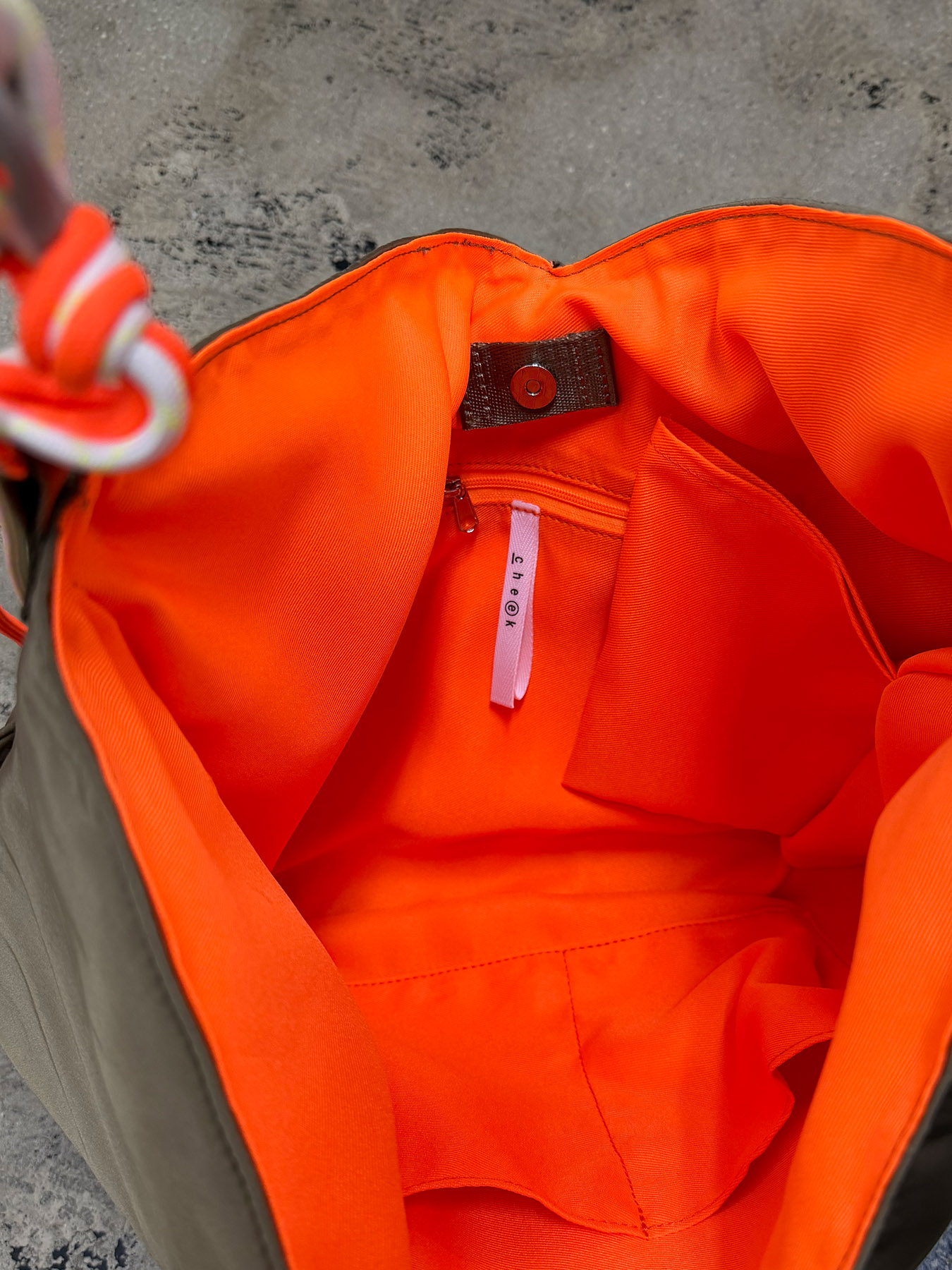 内装にはジッパーポケットと2つくちポケットがあり、小物を分けて収納できて便利。