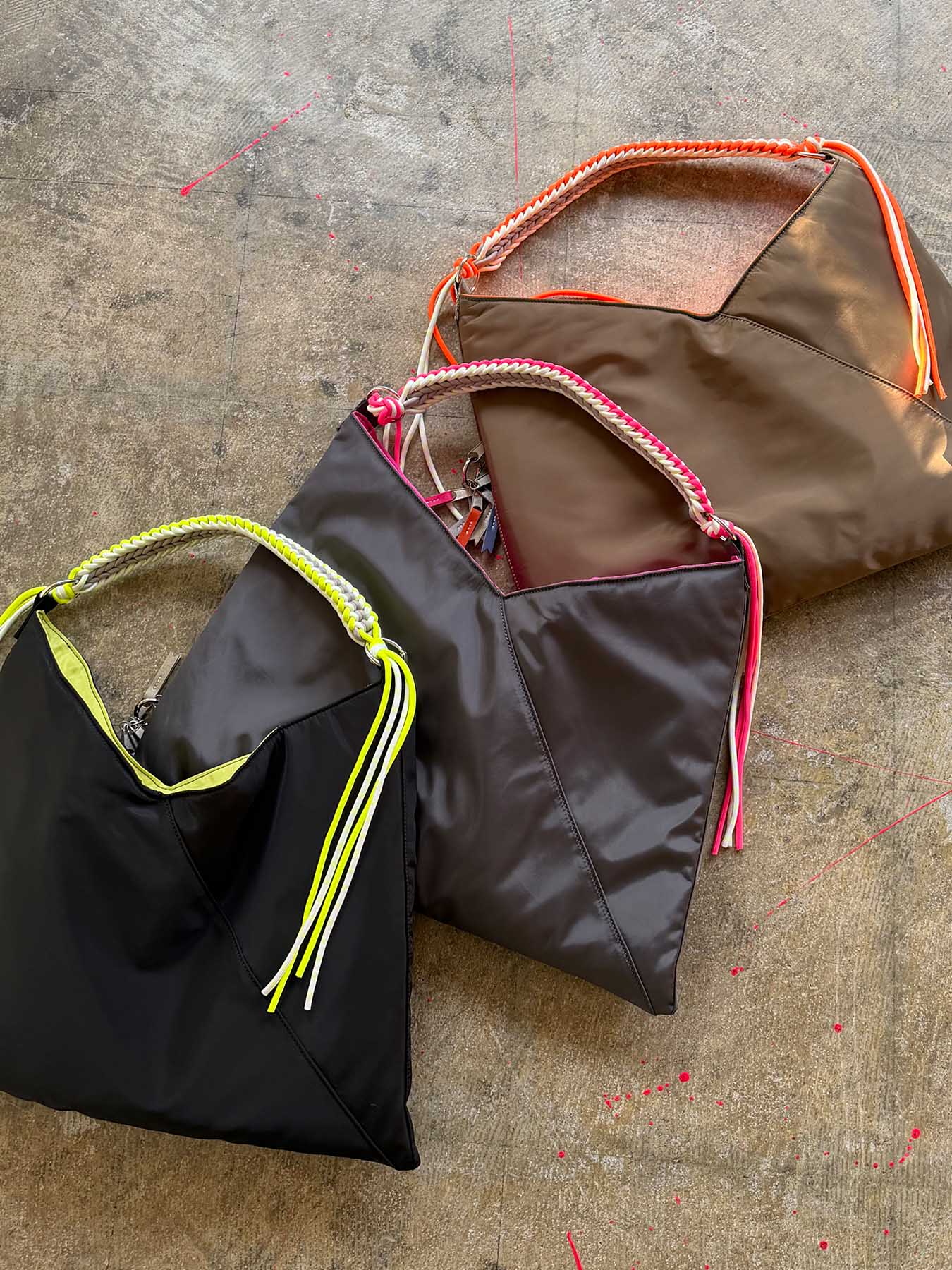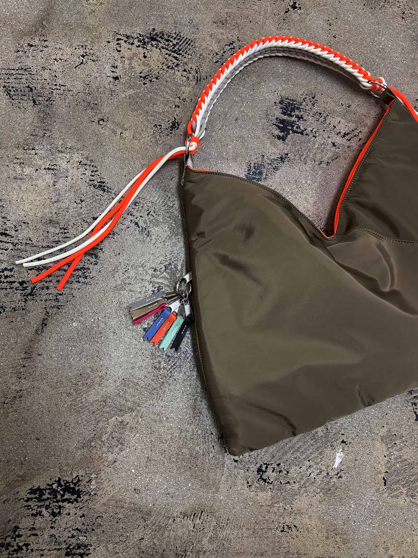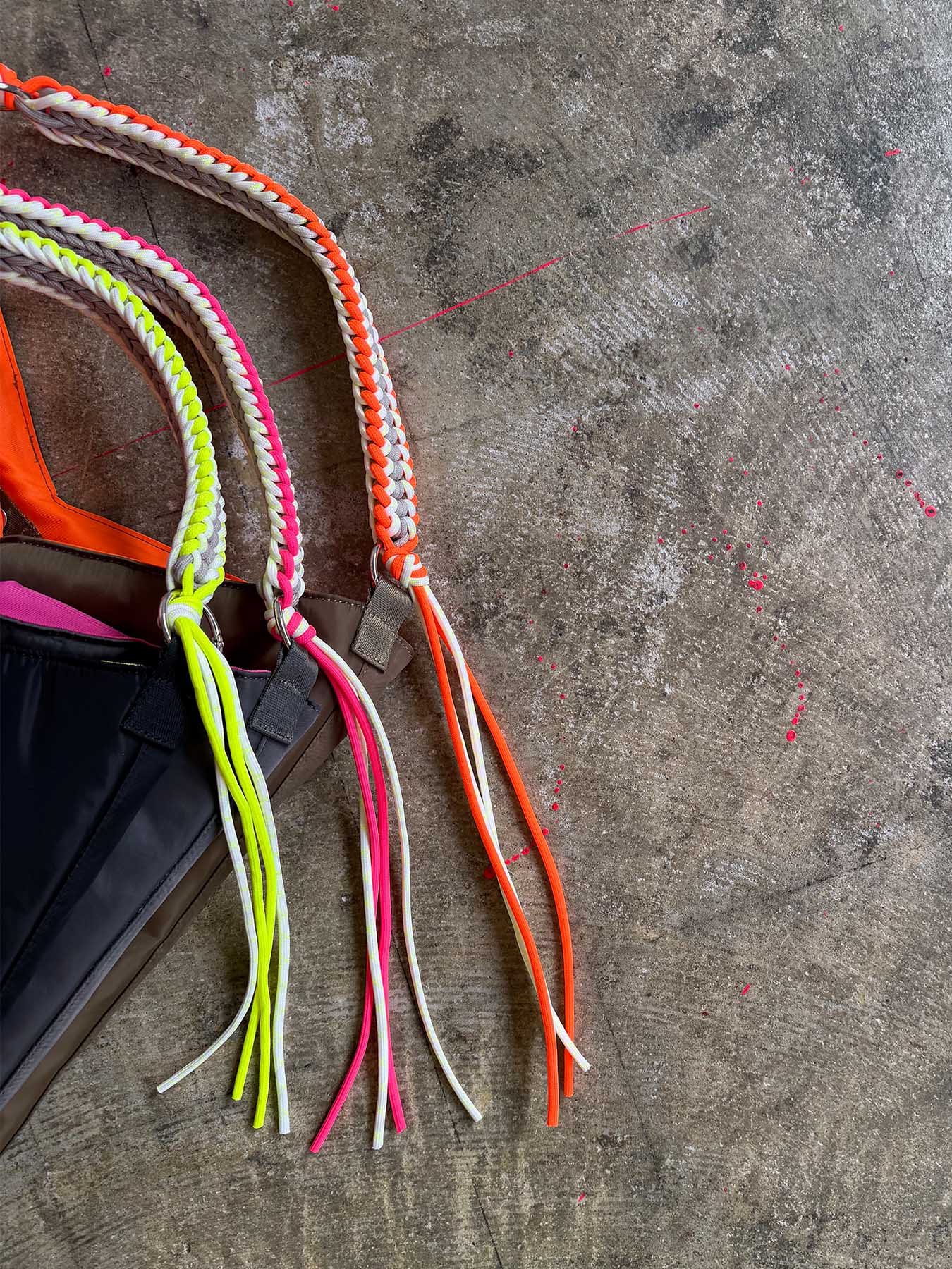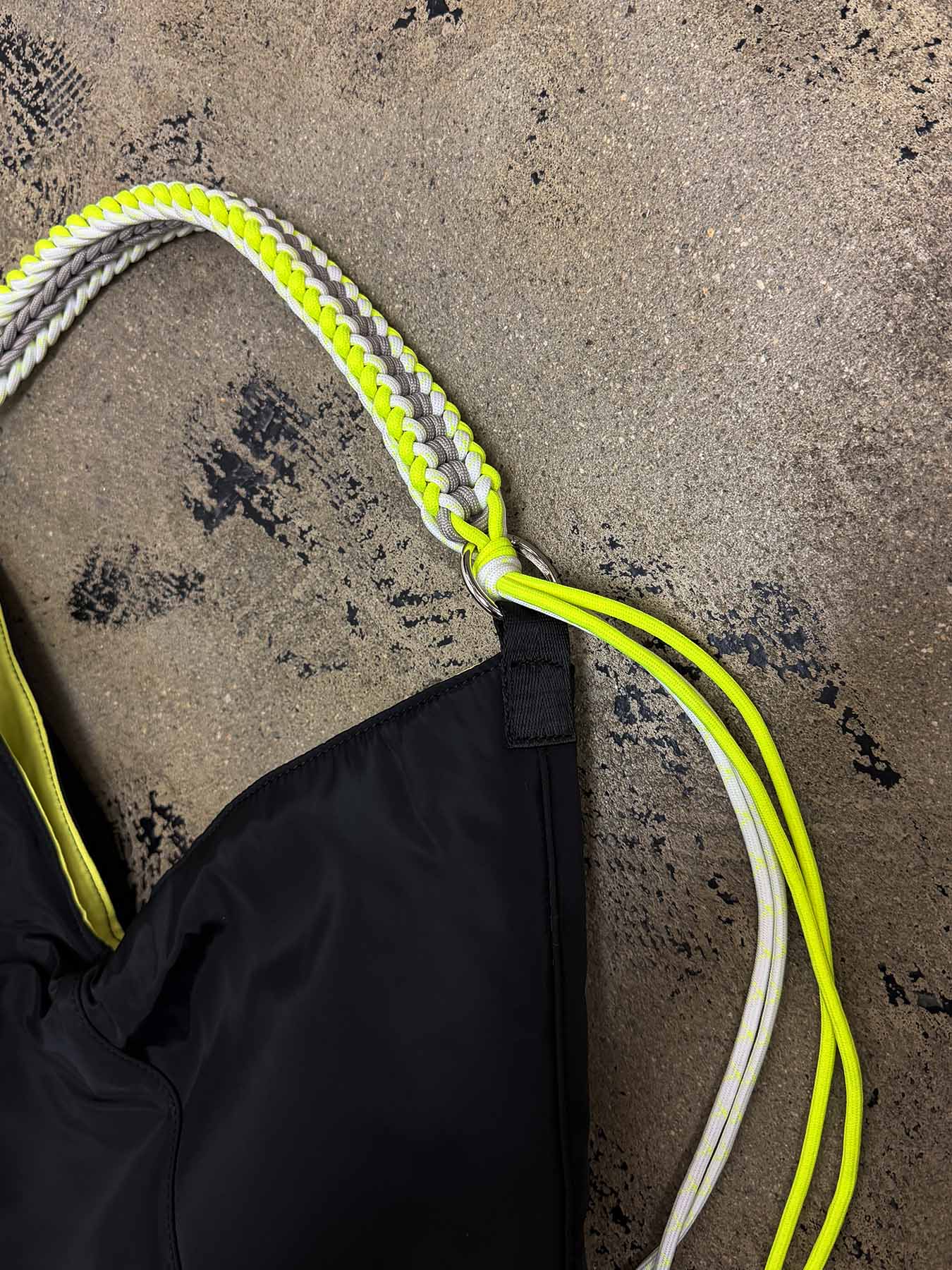 ショルダーには3色のコードを使用し、編み込んだデザイン。
