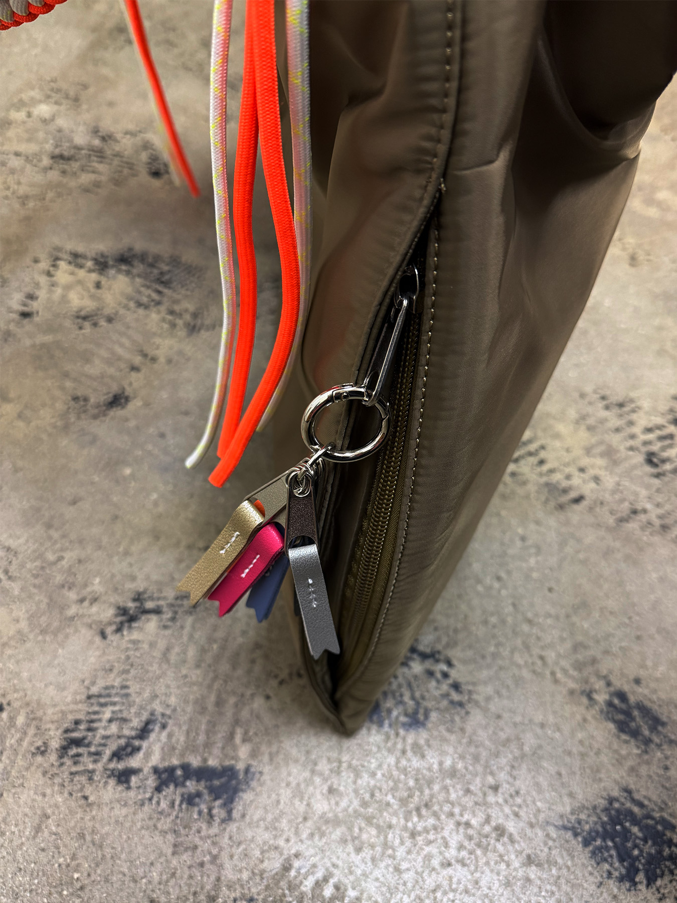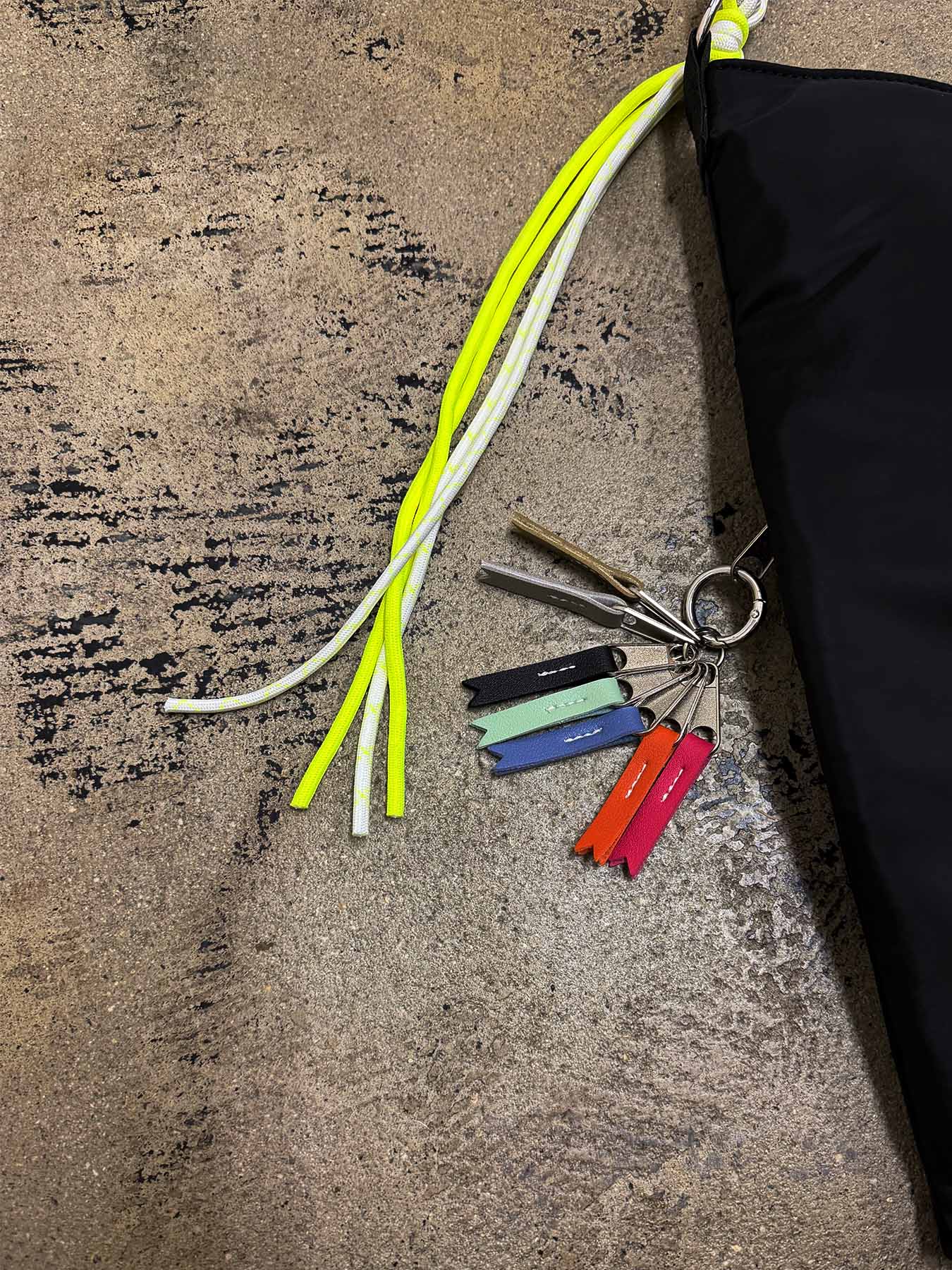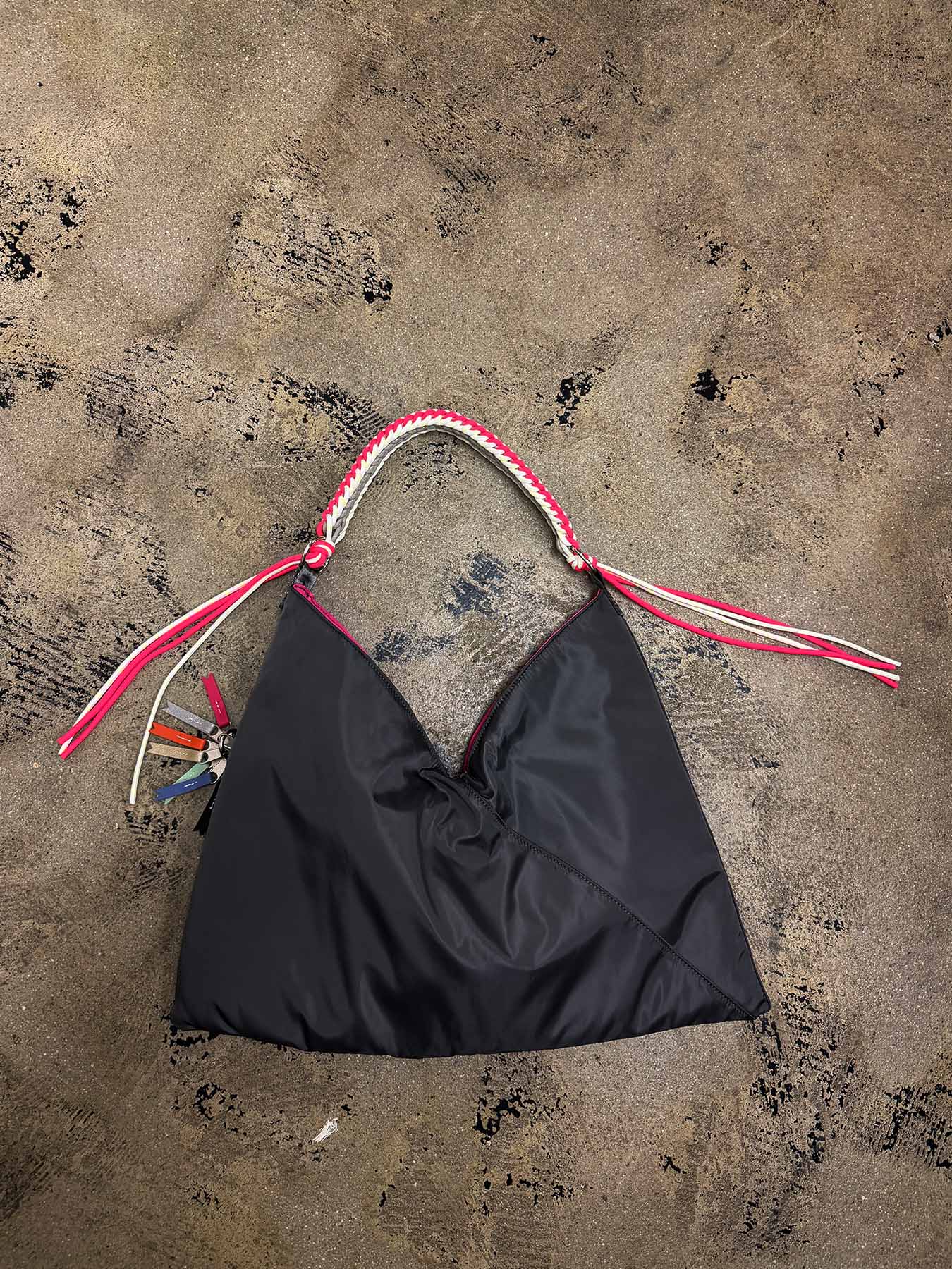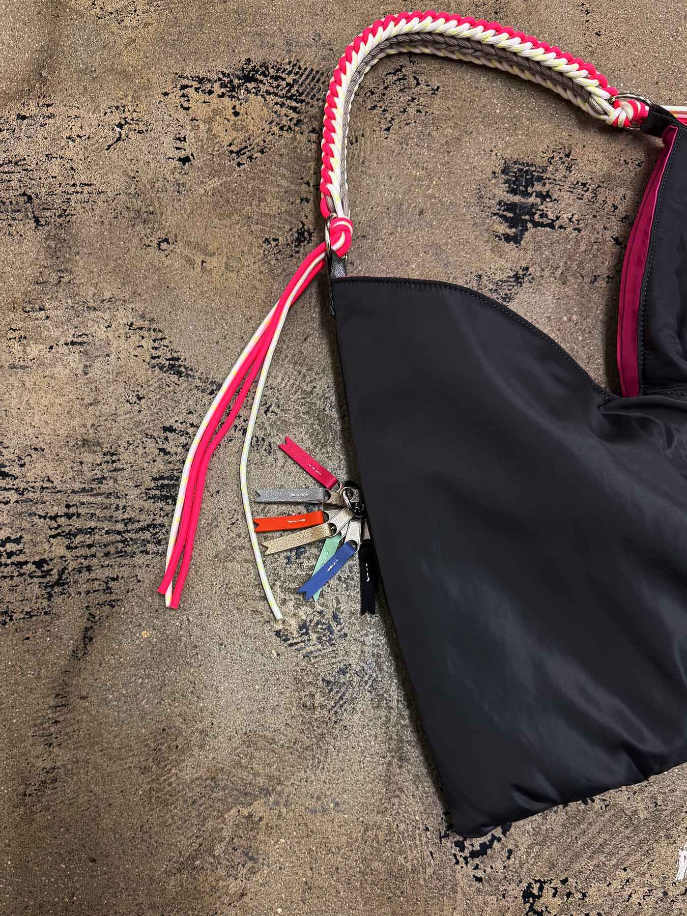 ハンドルからつながったコードがフリンジのように揺れ、キュートな印象に。