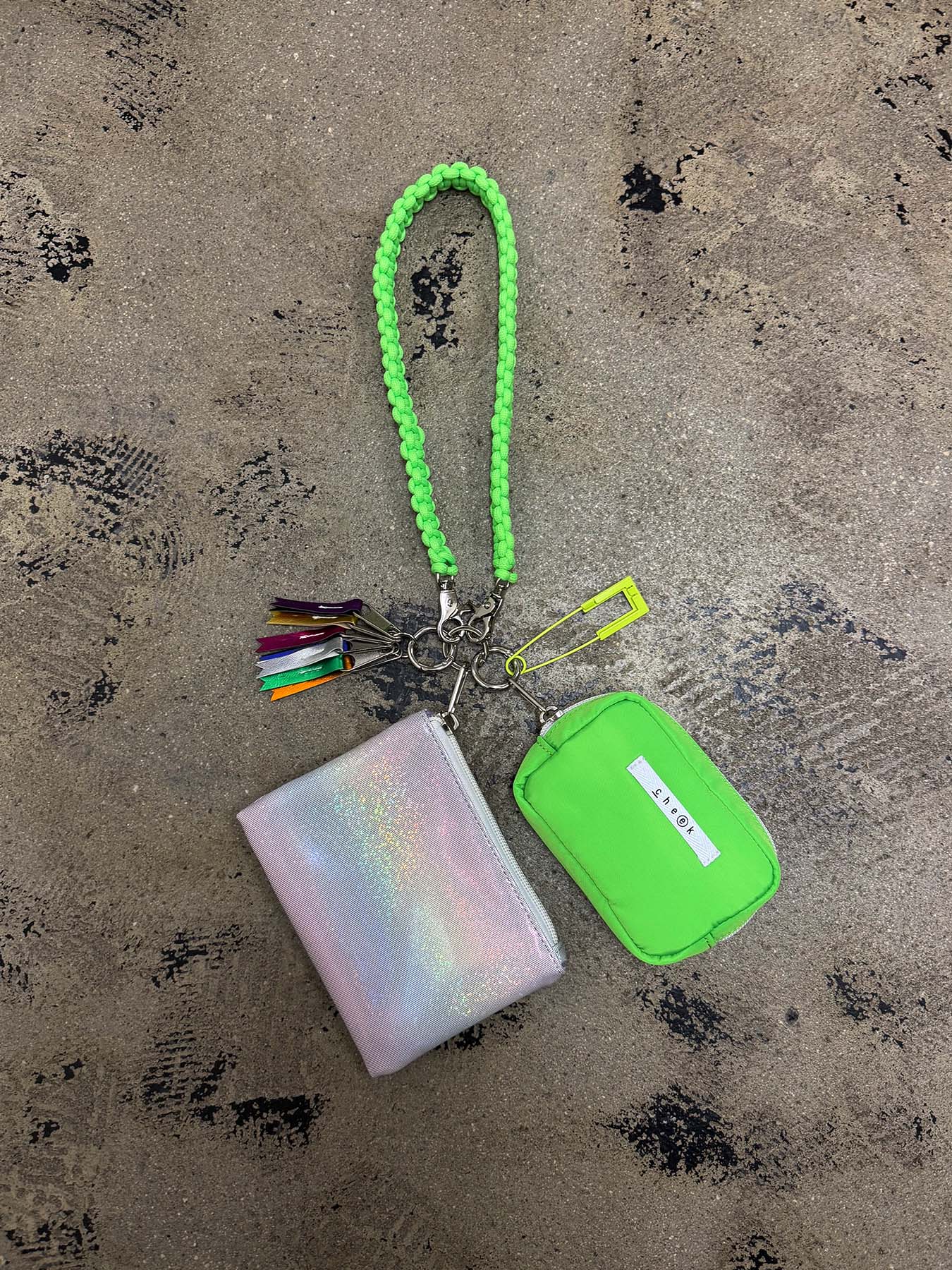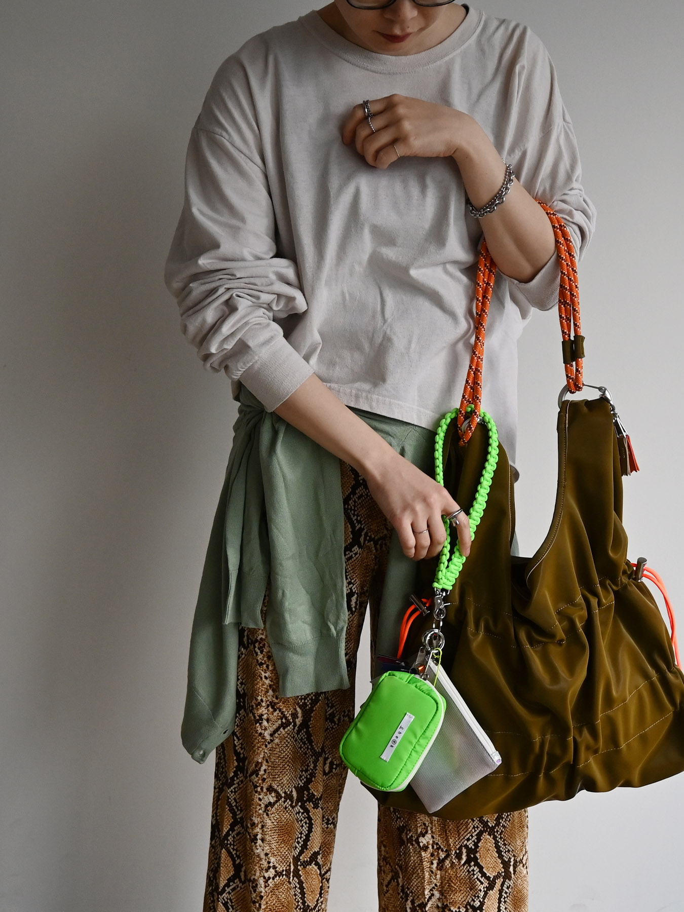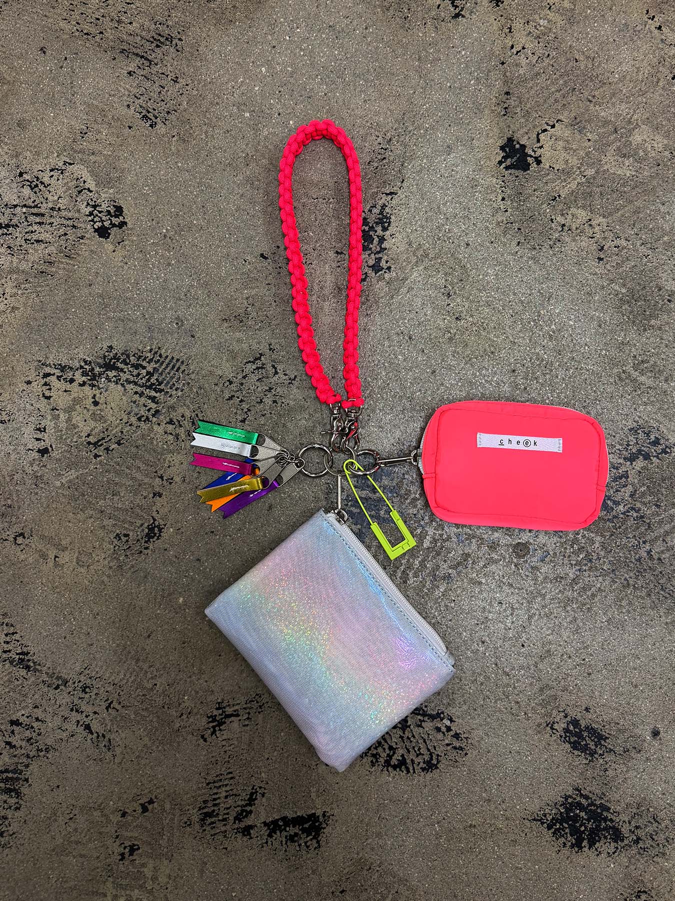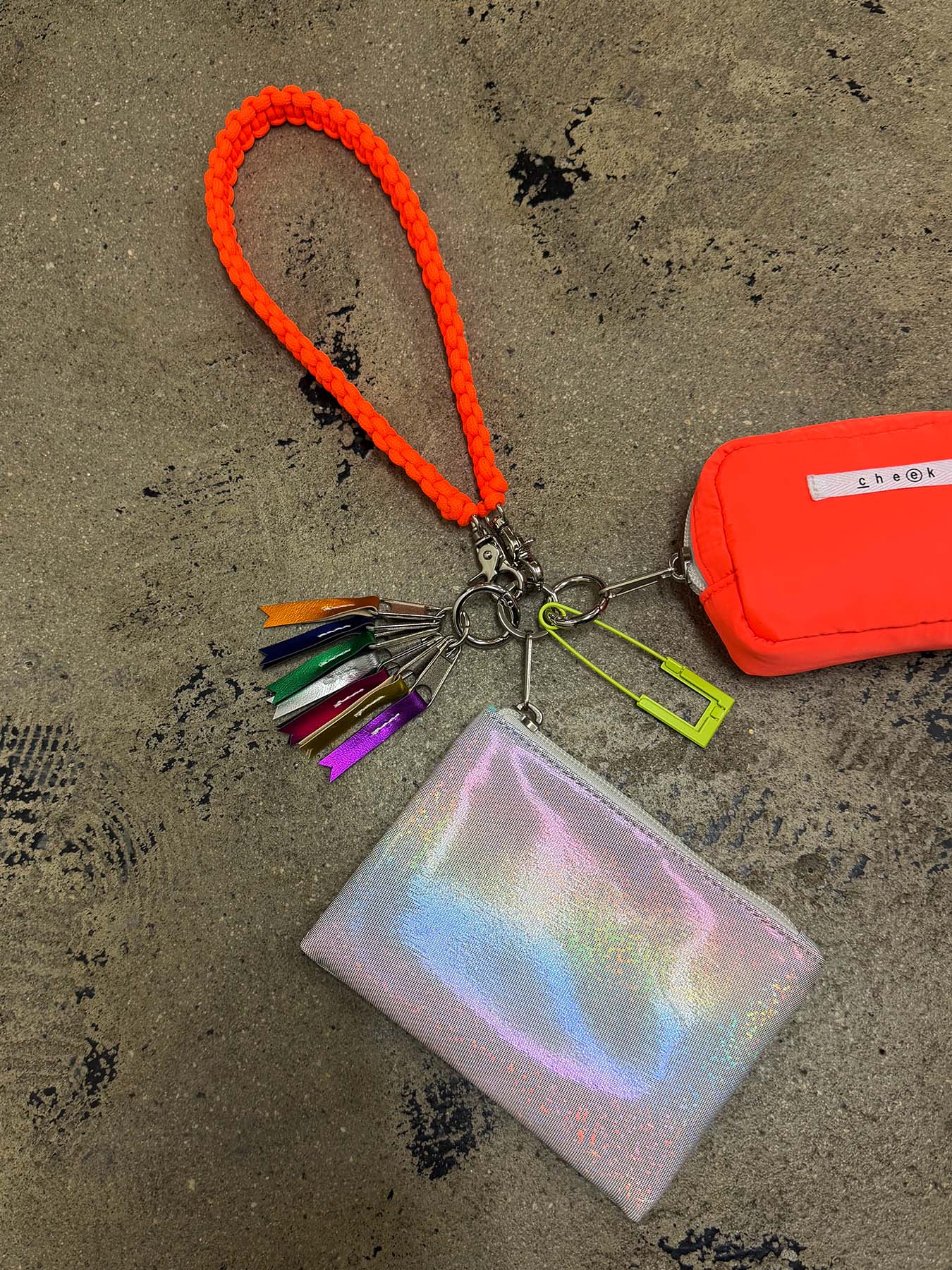 ネオンカラーのストラップをベースにミニポーチをフラグメントケース、