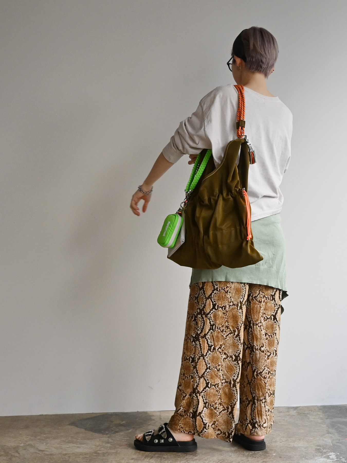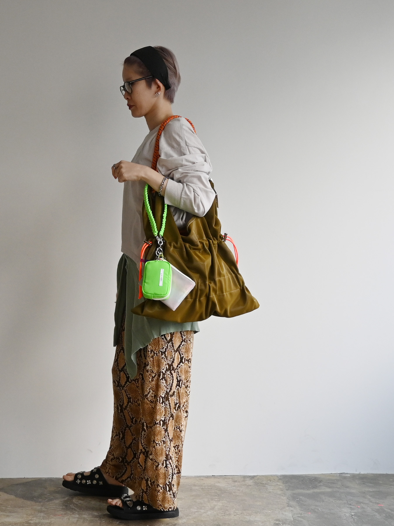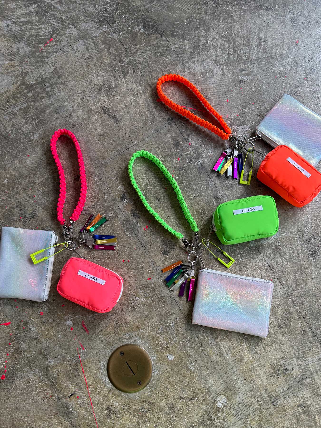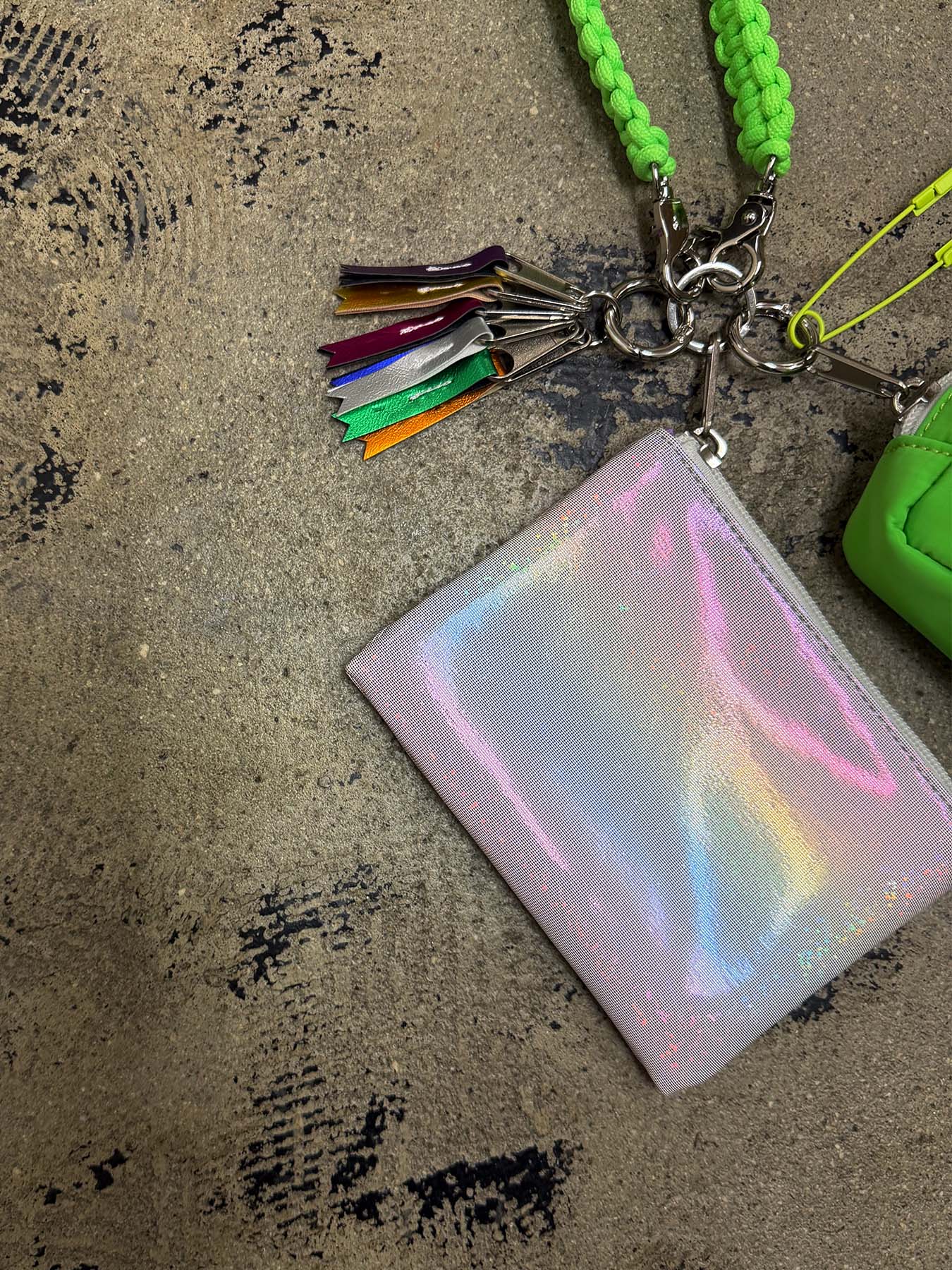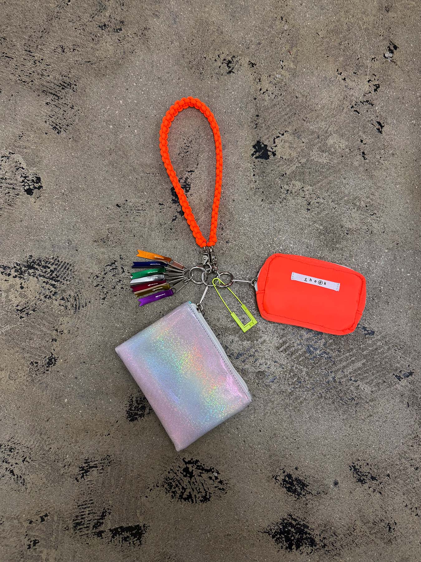 ネオンカラーのストラップをベースにミニポーチをフラグメントケース、