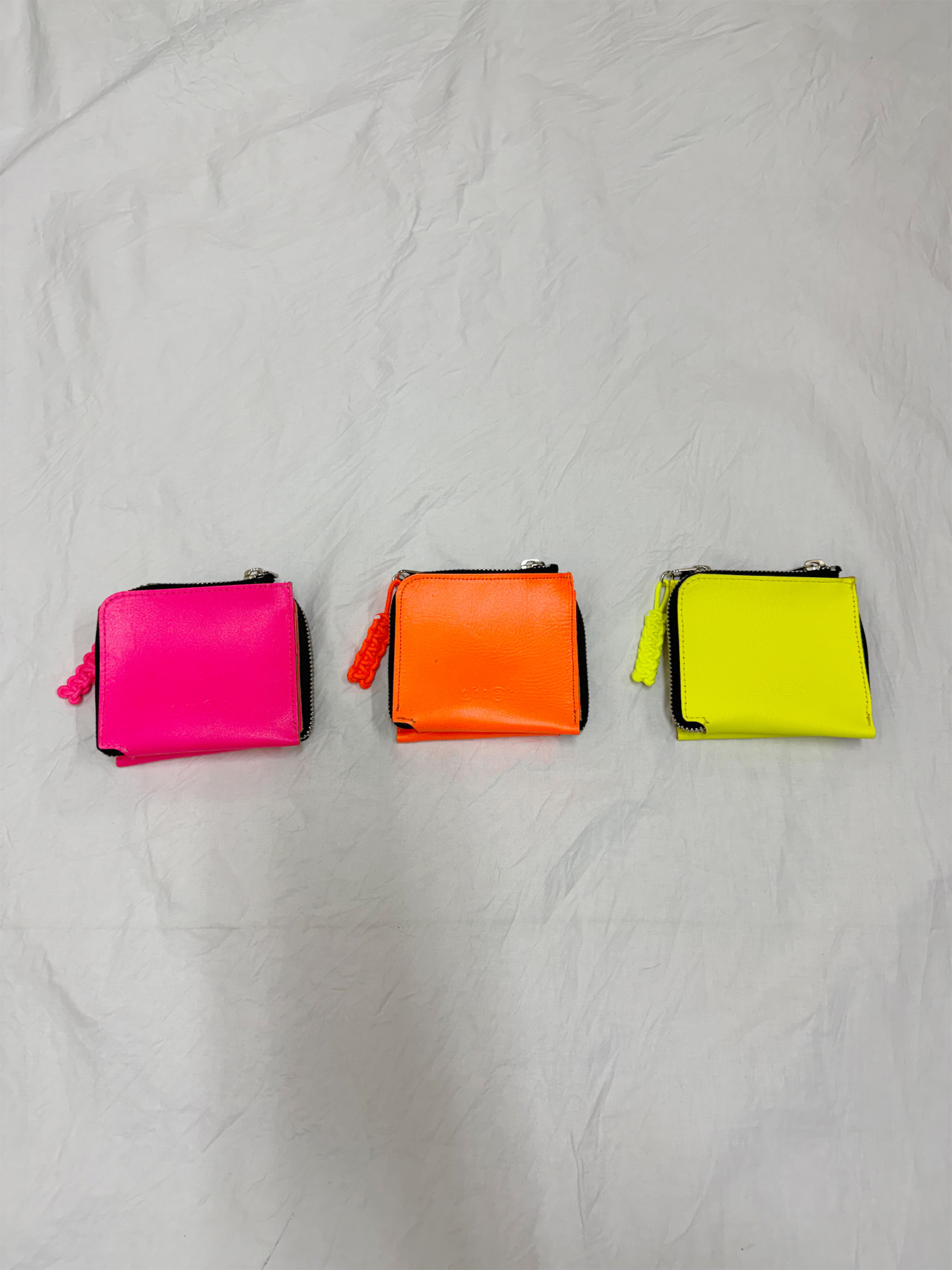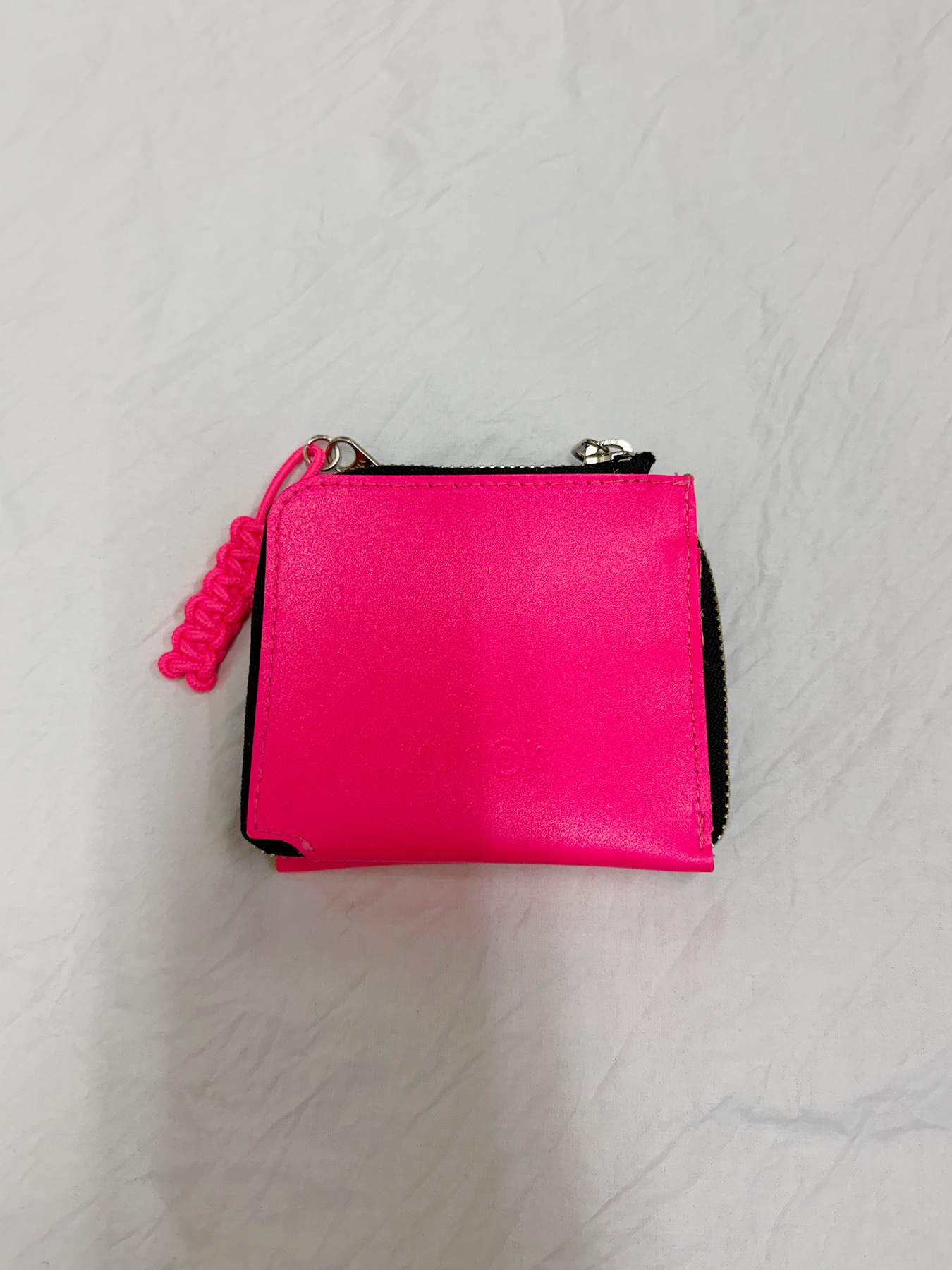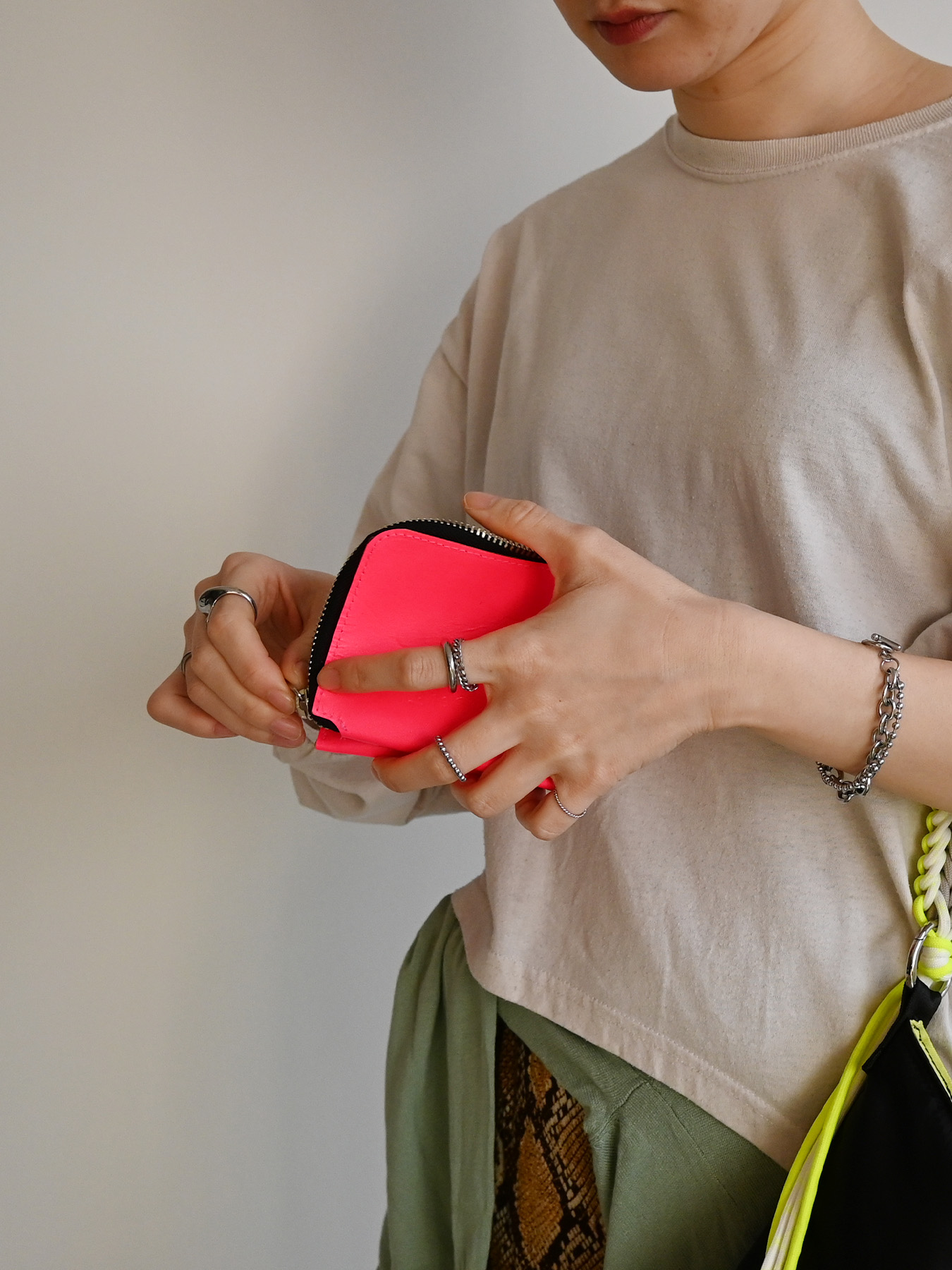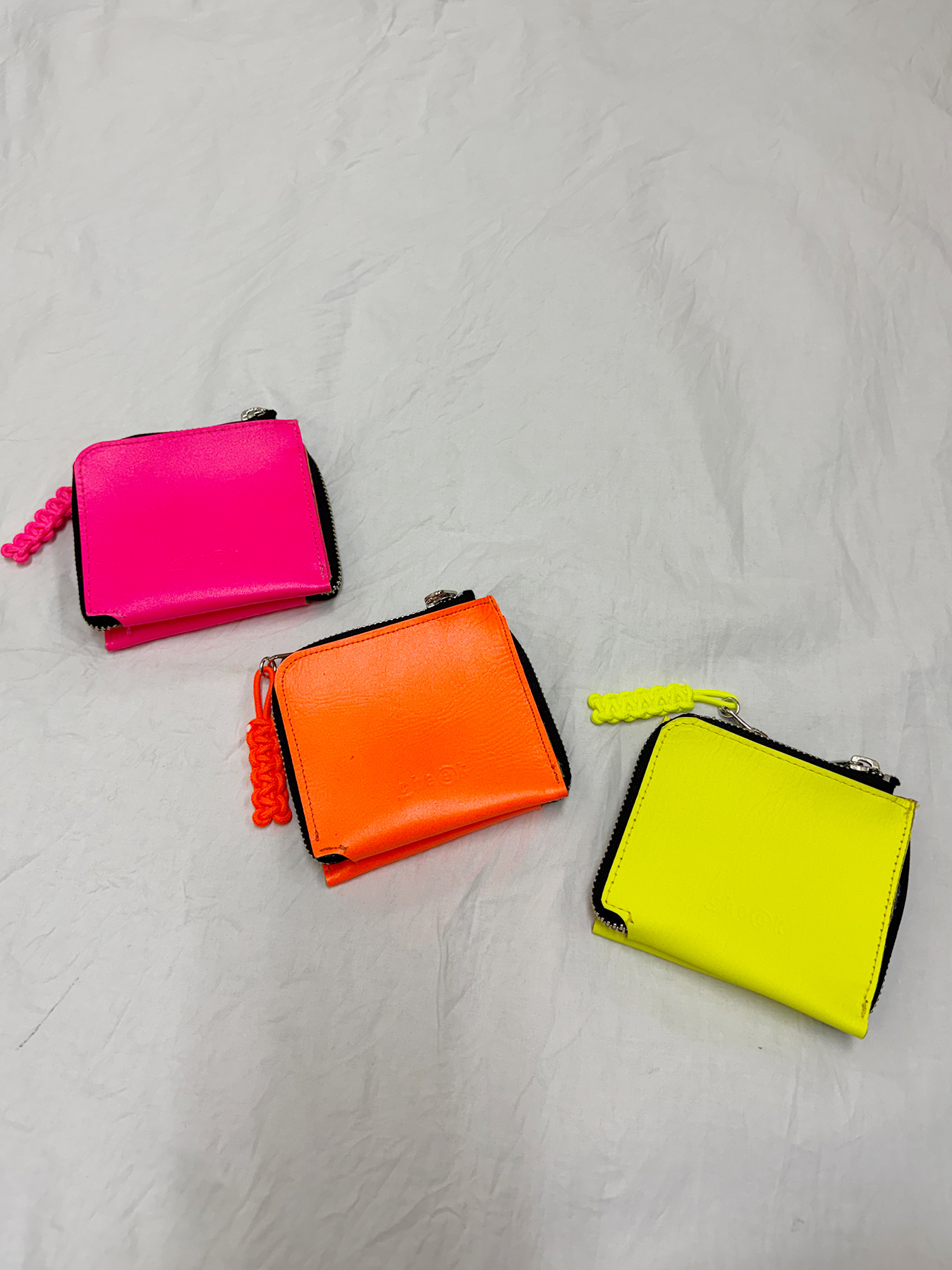 コンパクトながら存在感のある、ネオンカラーが印象的なミニウォレット。
