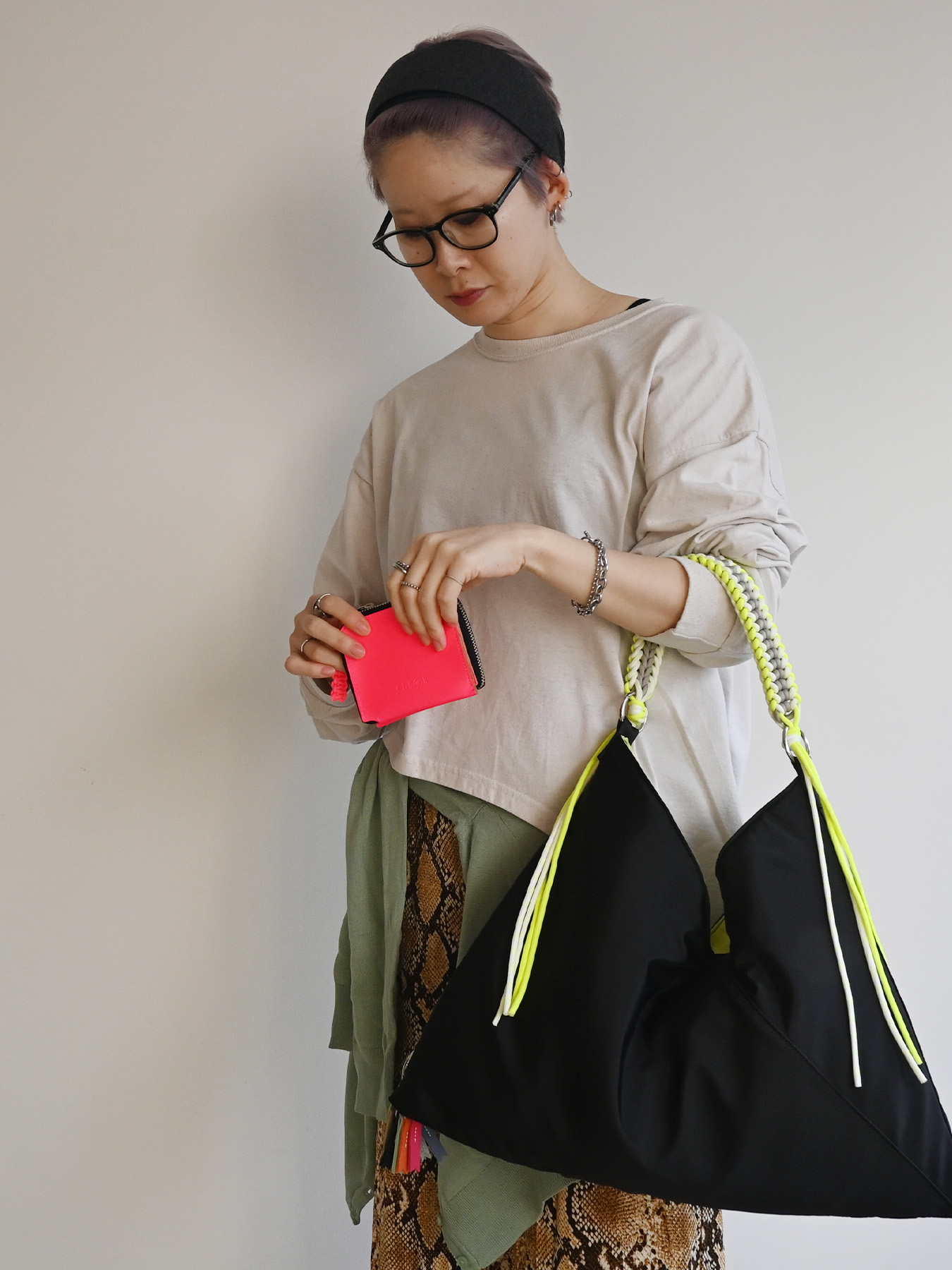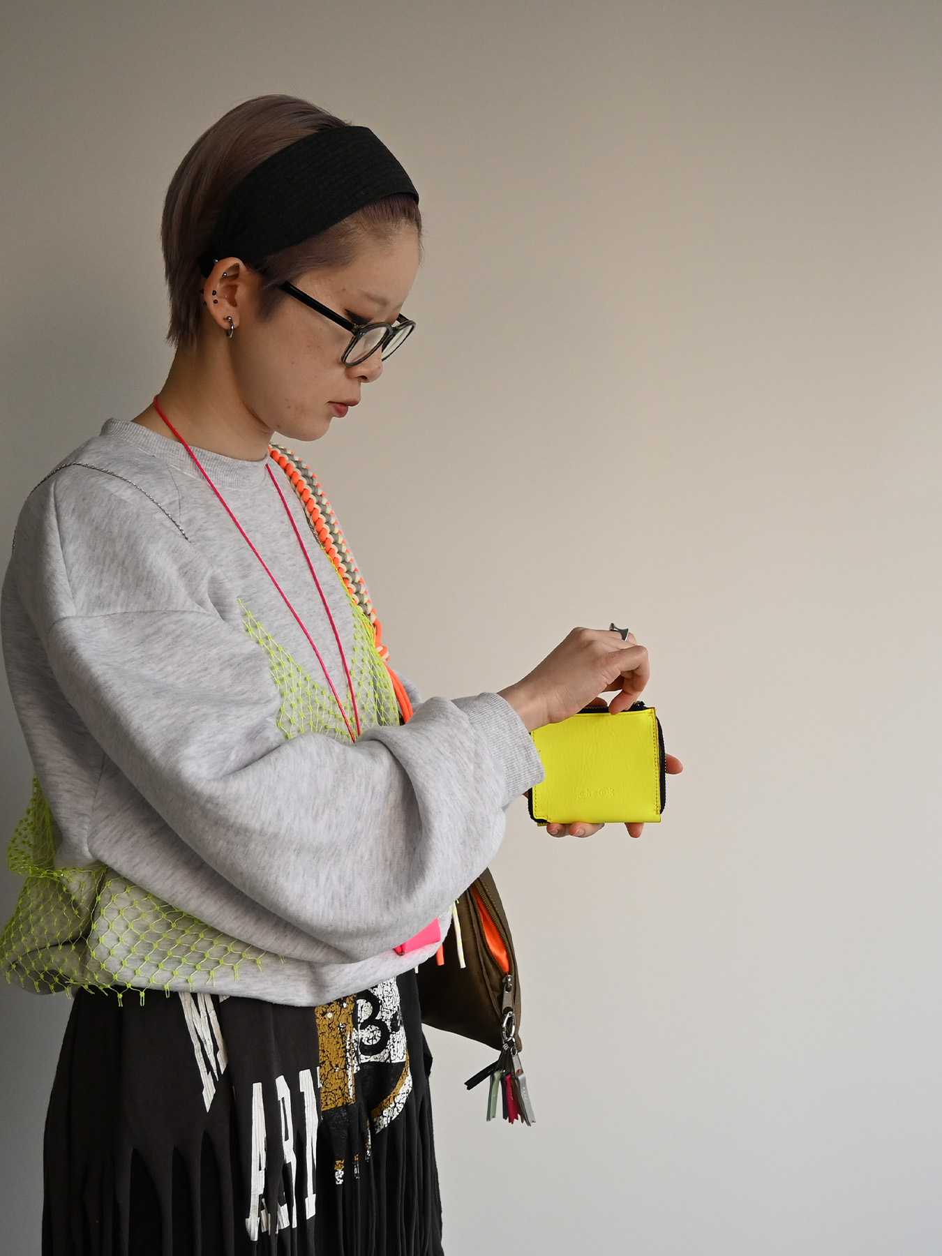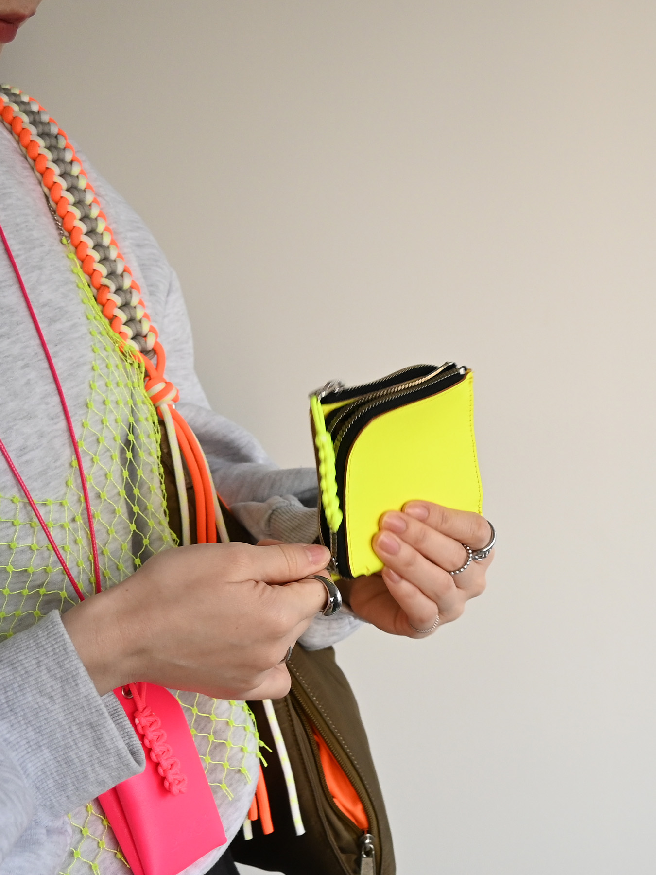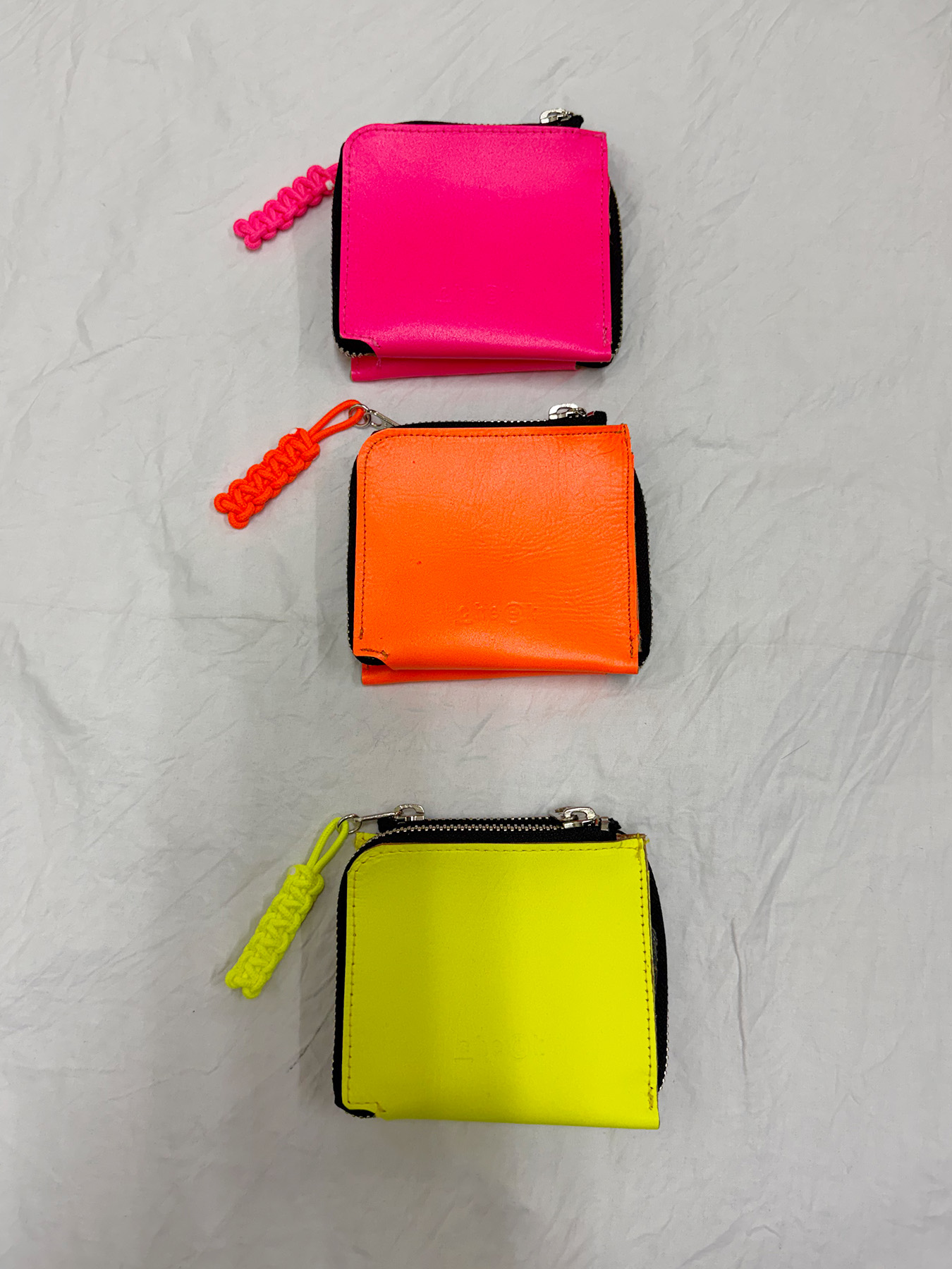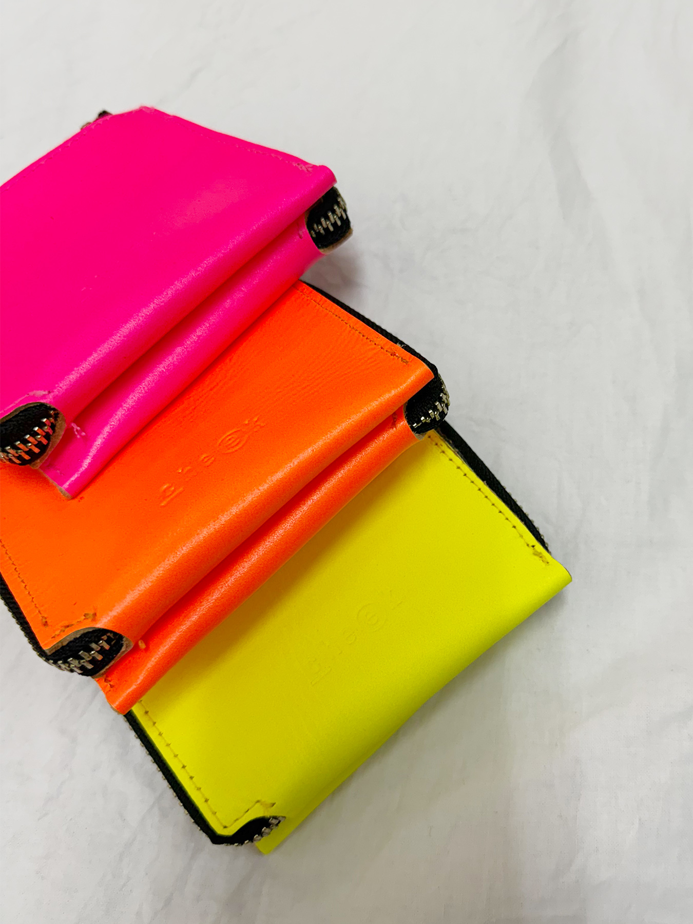 コンパクトながら存在感のある、ネオンカラーが印象的なミニウォレット。