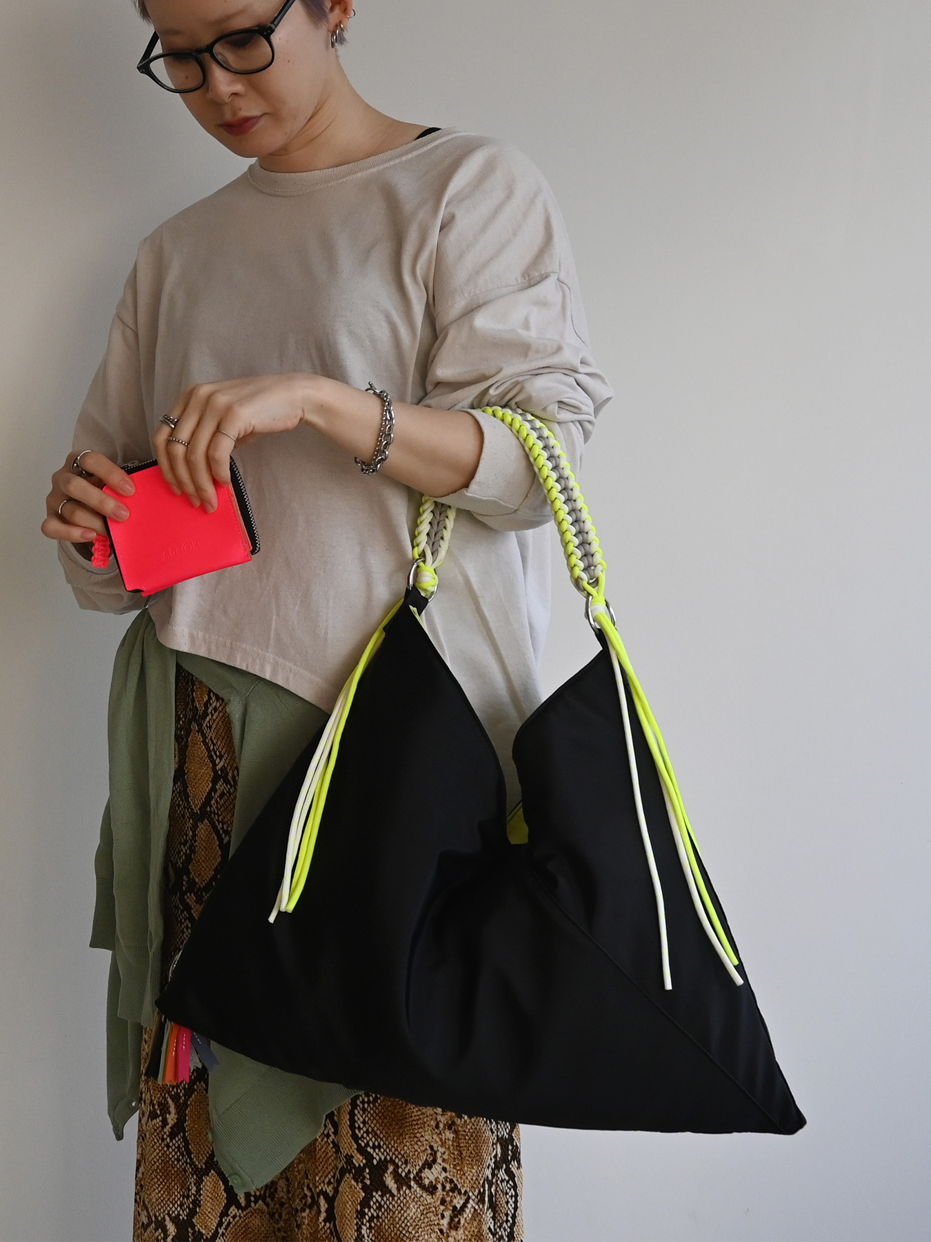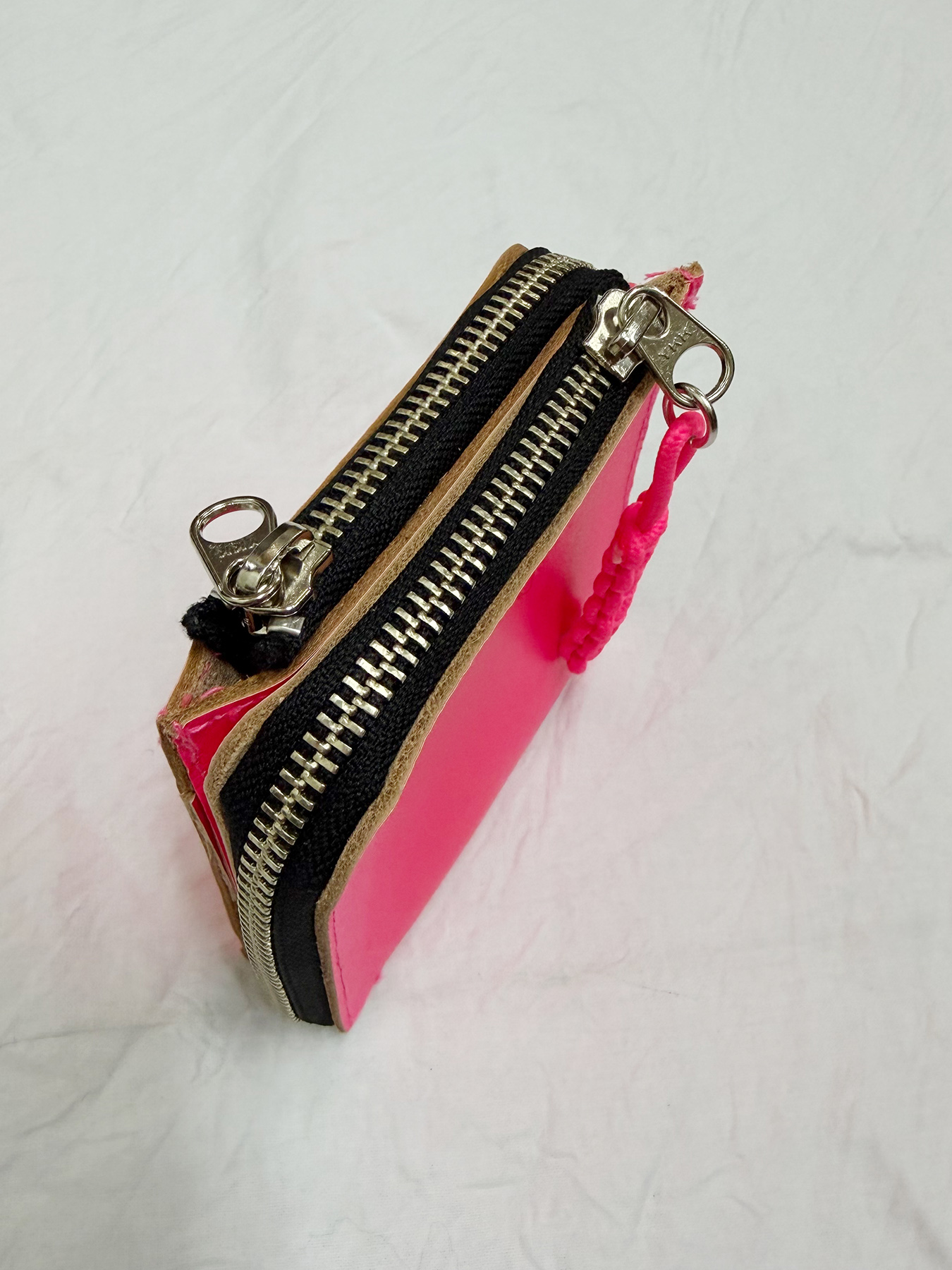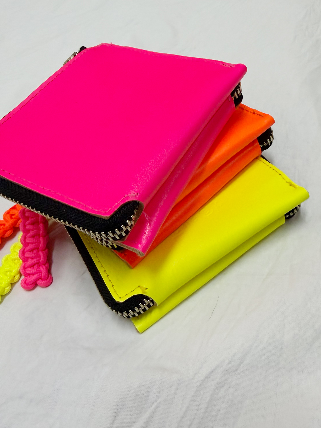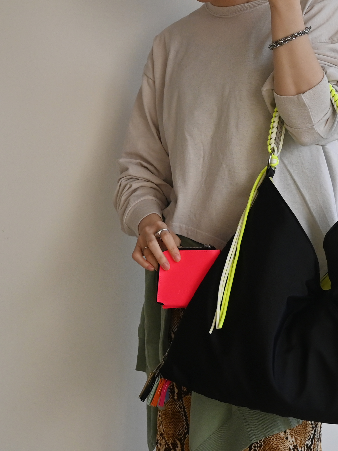 コンパクトながら存在感のある、ネオンカラーが印象的なミニウォレット。