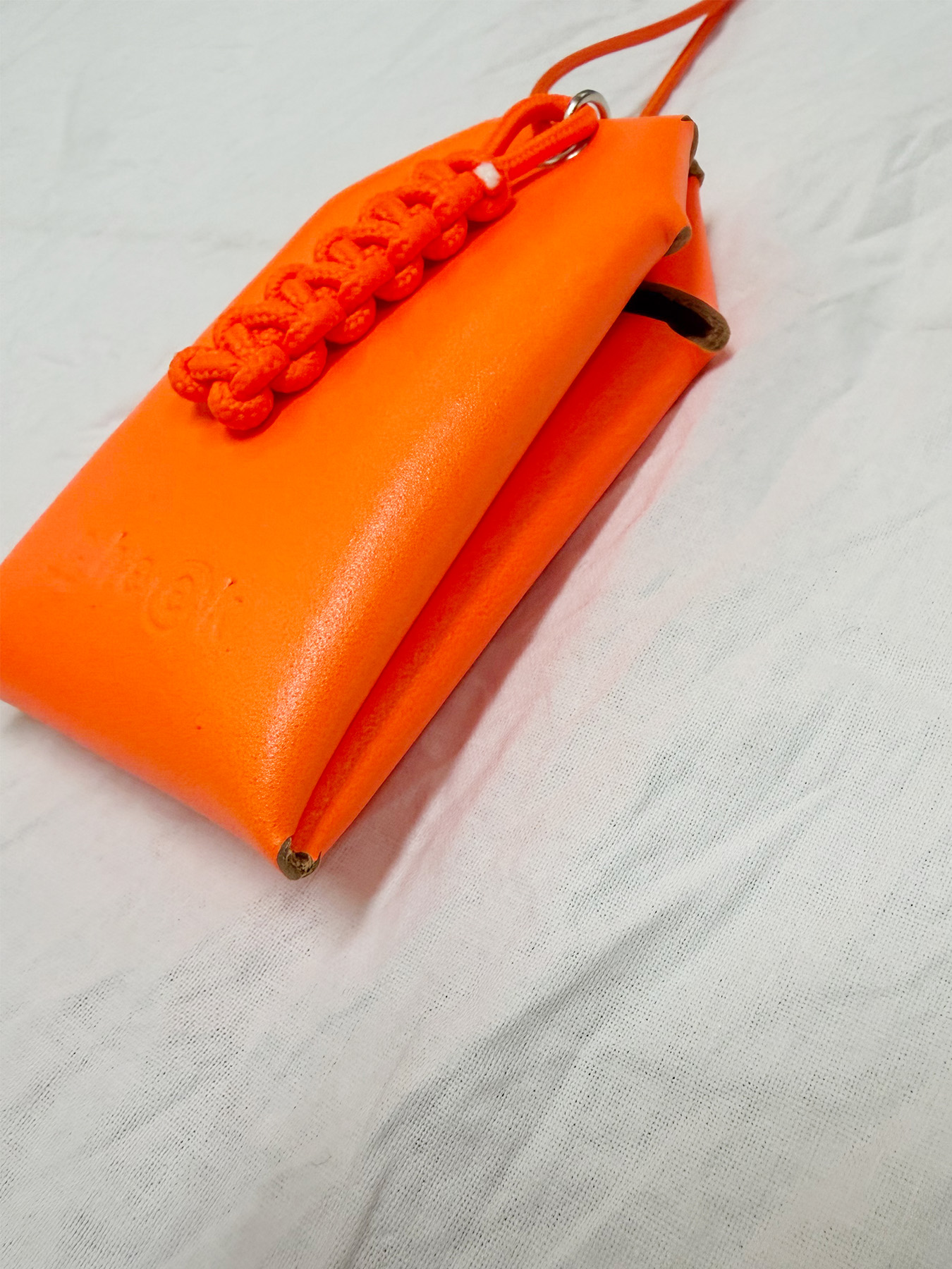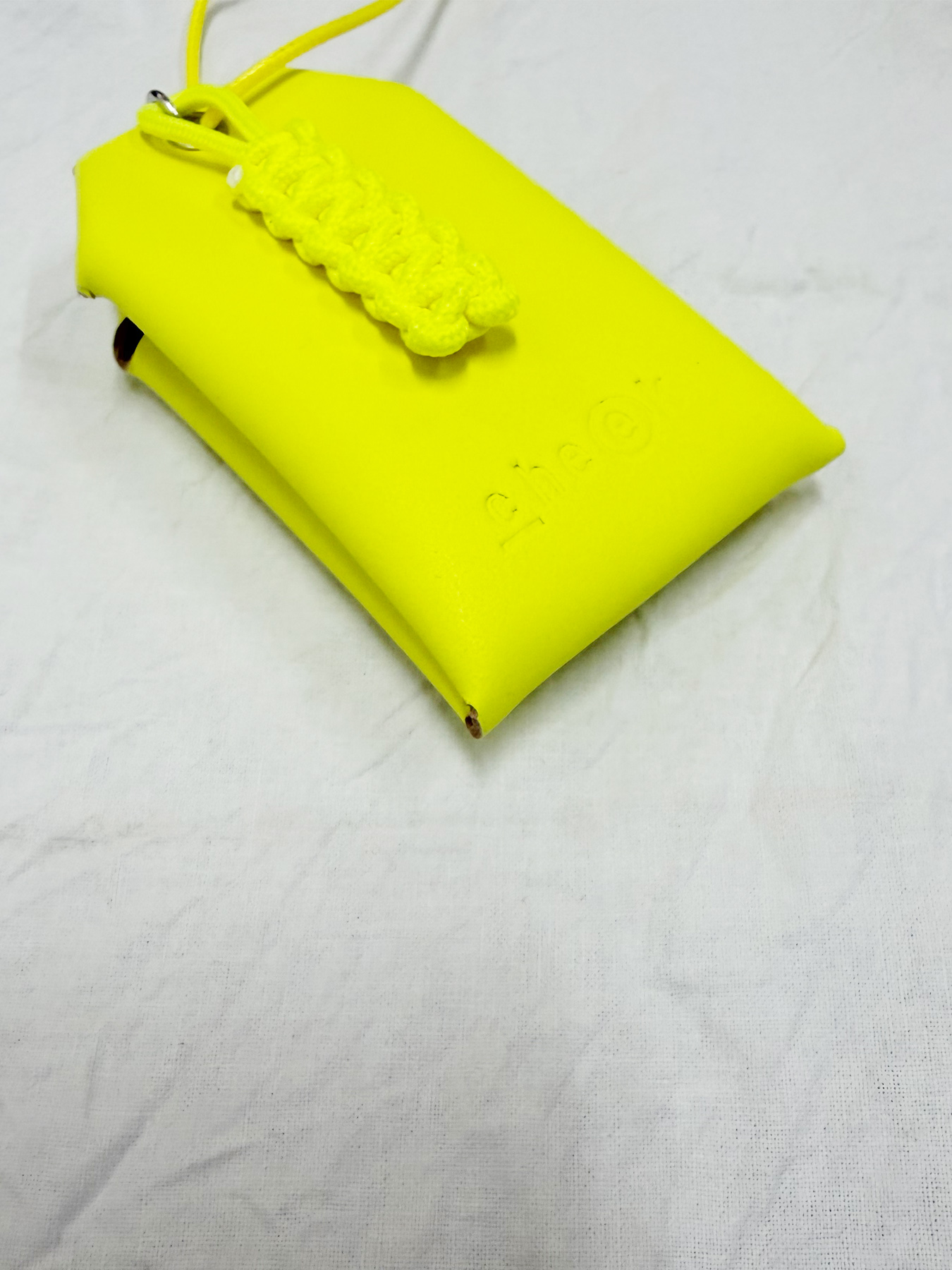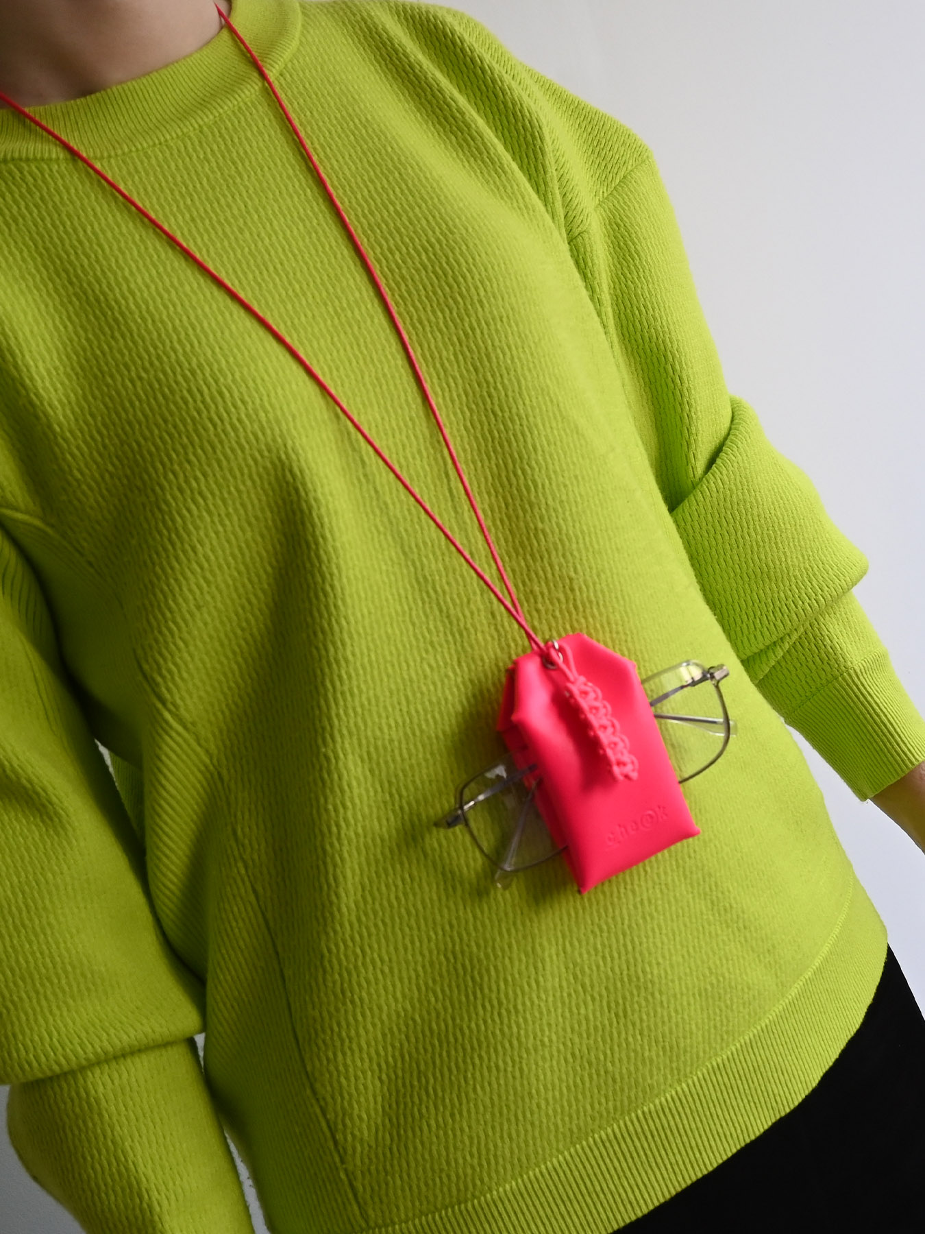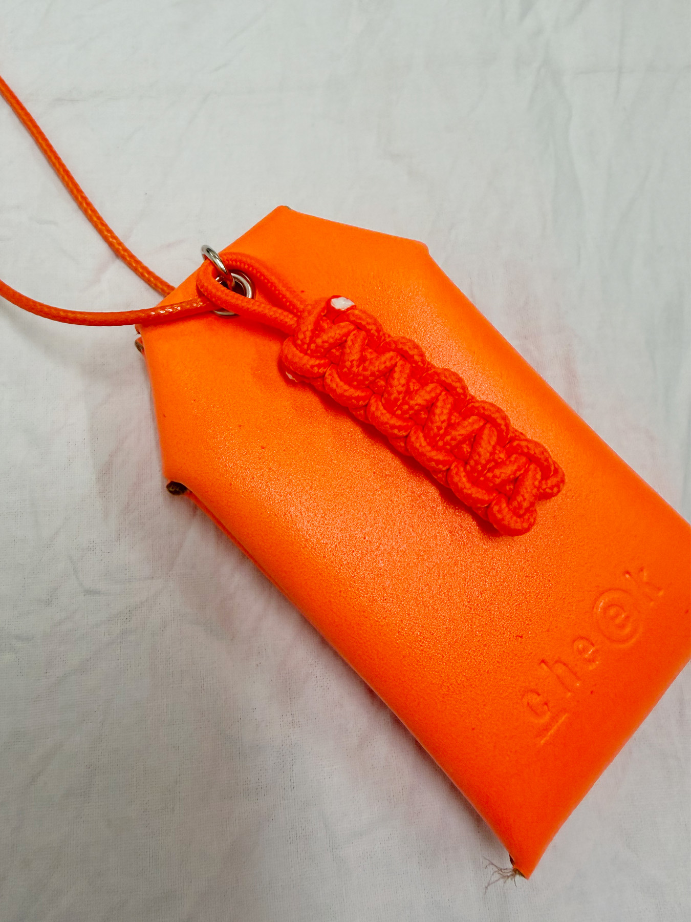 ネオンカラーが目を惹く、お守りデザインのネックレス。