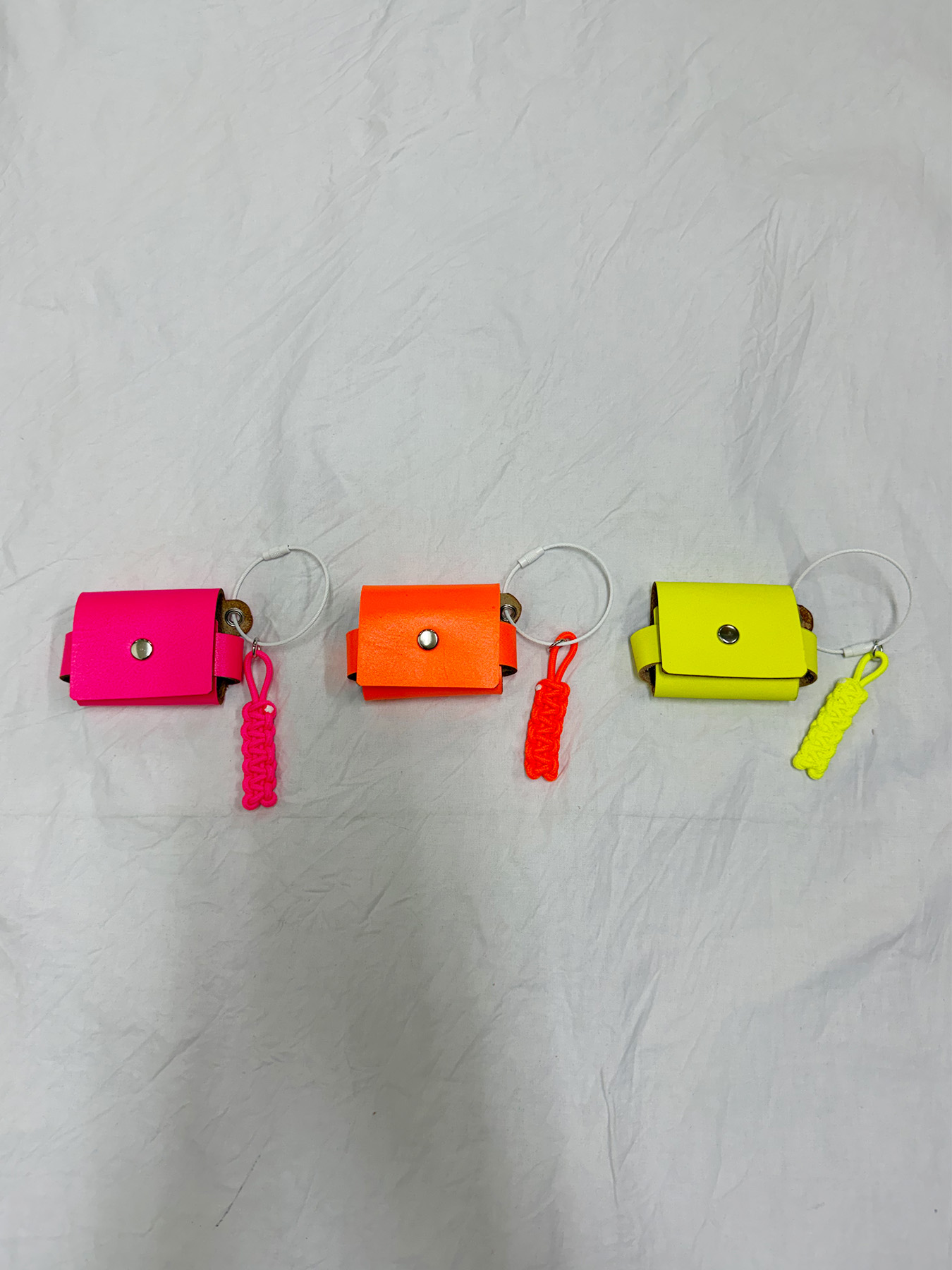 ネオンカラーが映える、ワイヤレスイヤホン対応のミニケース。